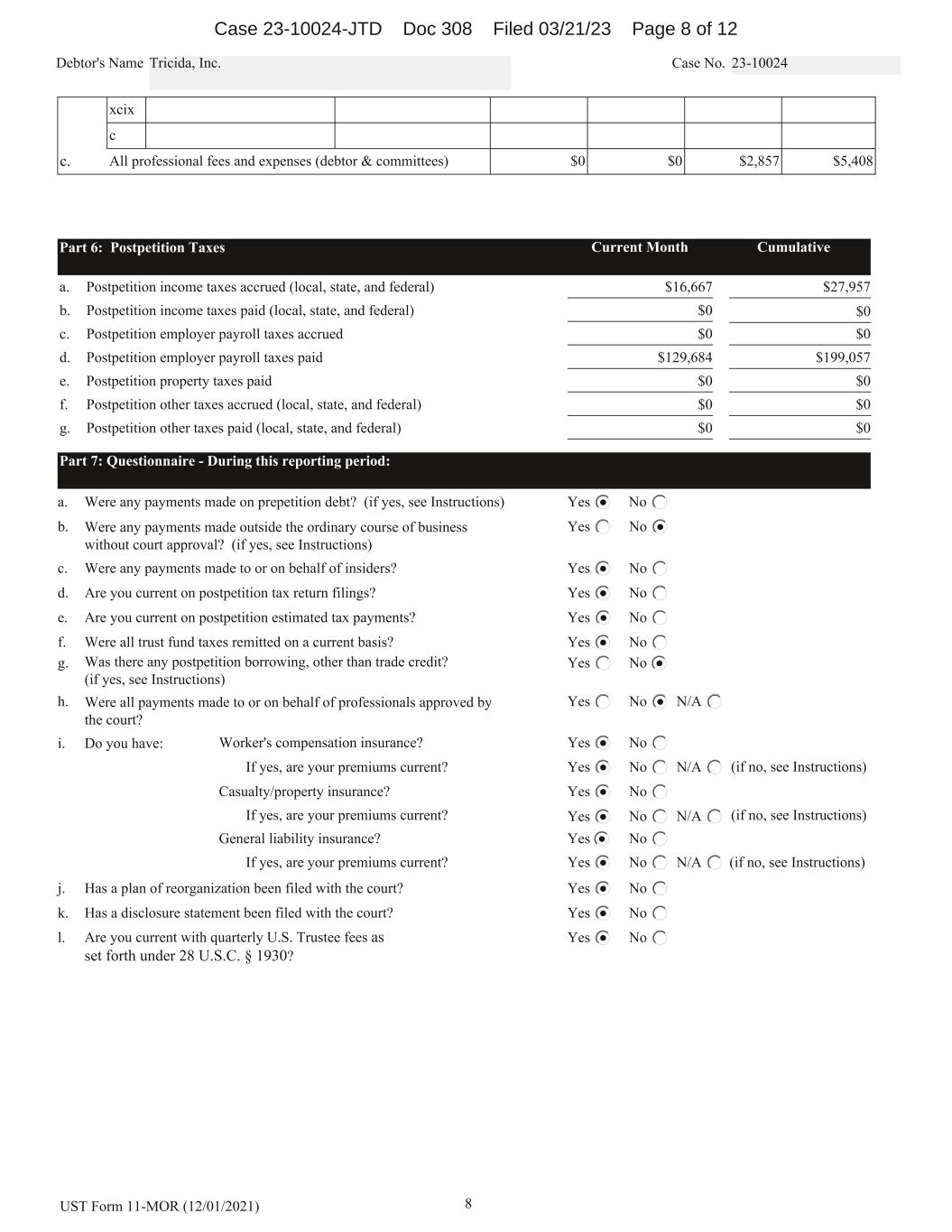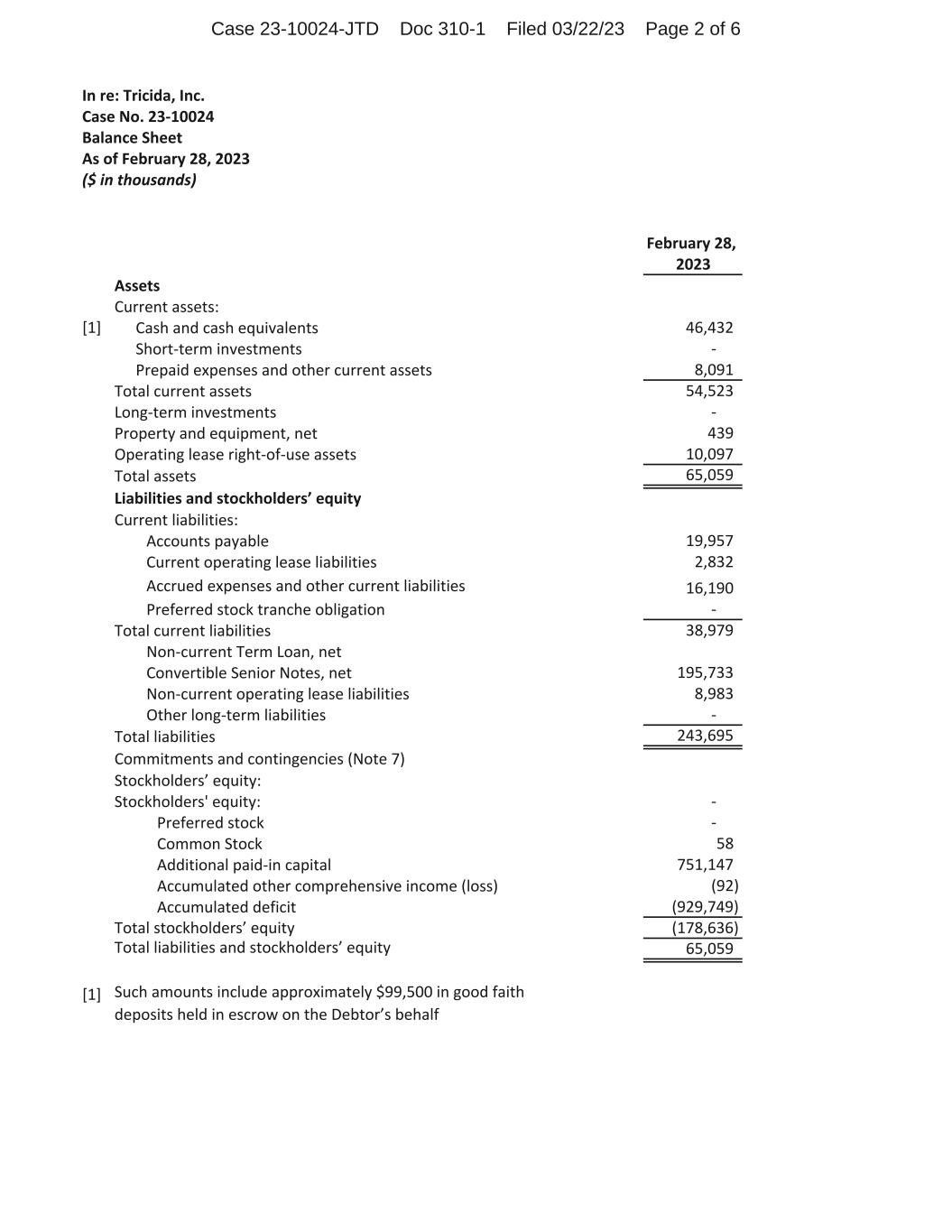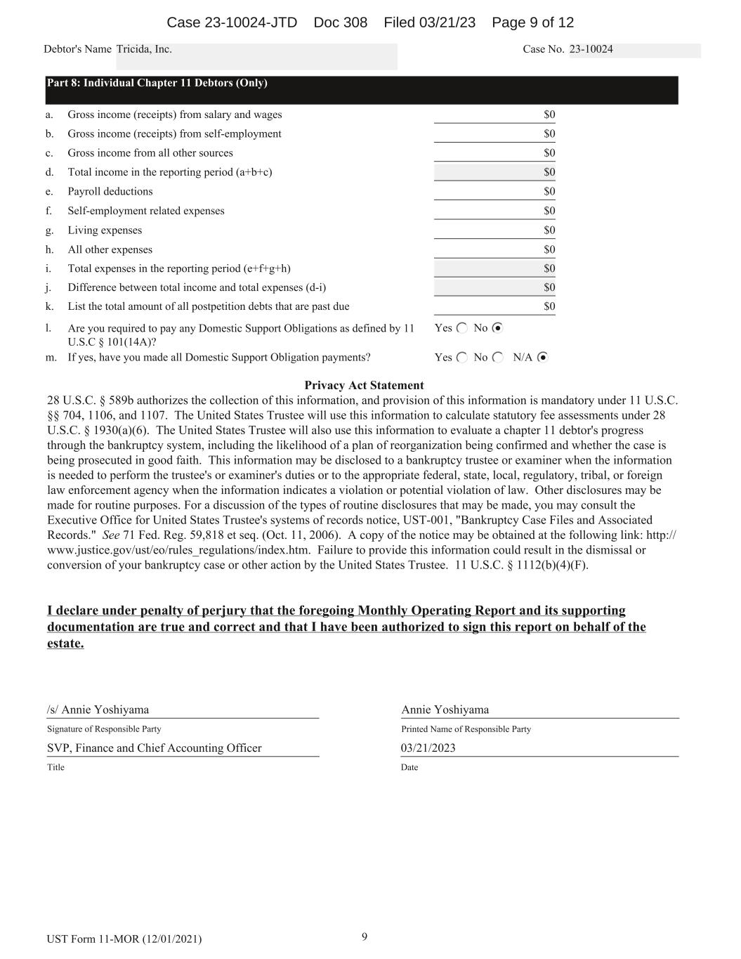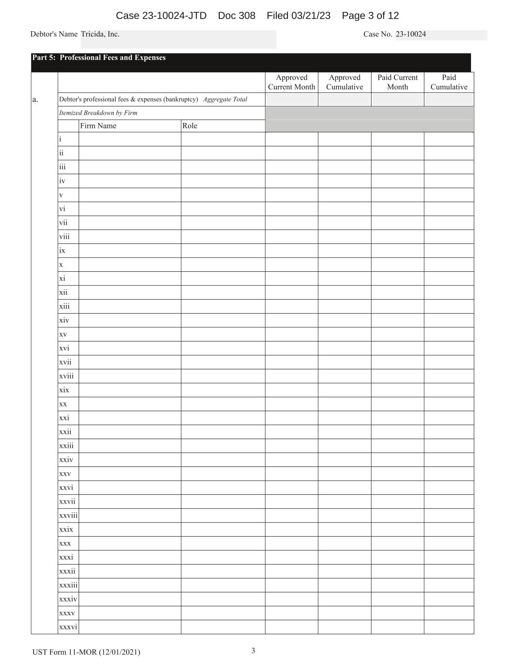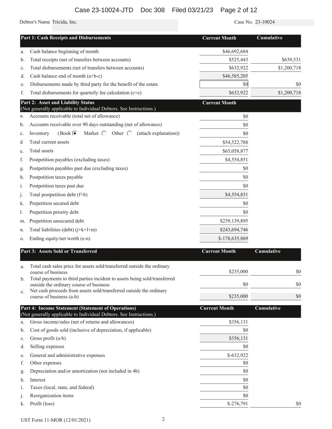 Ust format 11-mor(12/01/2021)10 debtor's name tricida,Inc. case No. 23-10024 pageonepartone pageoneparttwo pagetwopartone pagetwoparttwo case 23-10024-jtd doc 308 filed 03/21/23 page10 of 12