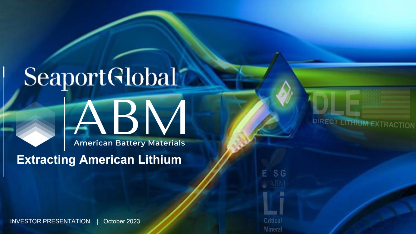 26500 West Putnam Avenue | Suite 400 Greenwich,CT 06831 | USA Company + 1-800-998-7962 IR@AmericanBatteryMaterials.com americanbatterymaterials.com 360 Madison Avenue | 22th Floor New York,NY 10017 | USA seaportglobal.com Company + 1-212-616-7700 |