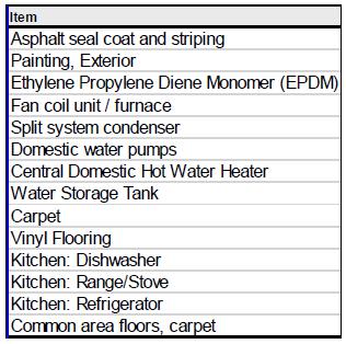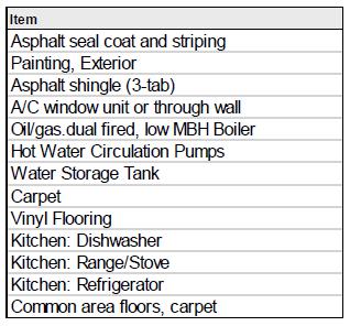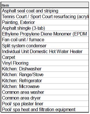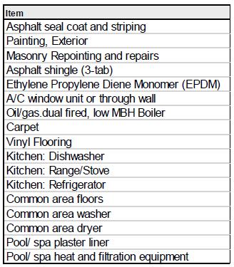 | 抵押财产 | 初始置换准备金 | 每月置换准备金 | ||||||