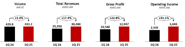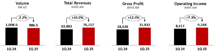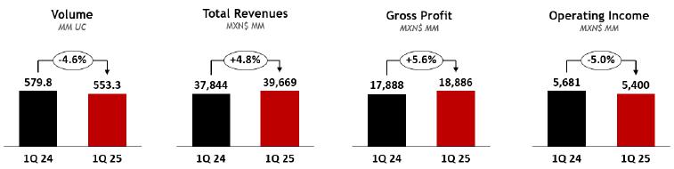 | 以百万墨西哥比索表示 | 2025年第一季度 | 2024年第一季度 | Δ% | Δ% | ||