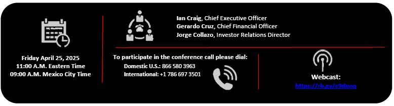 | 以百万墨西哥比索表示 | 2025年第一季度 | 2024年第一季度 | Δ % | |||||||||||