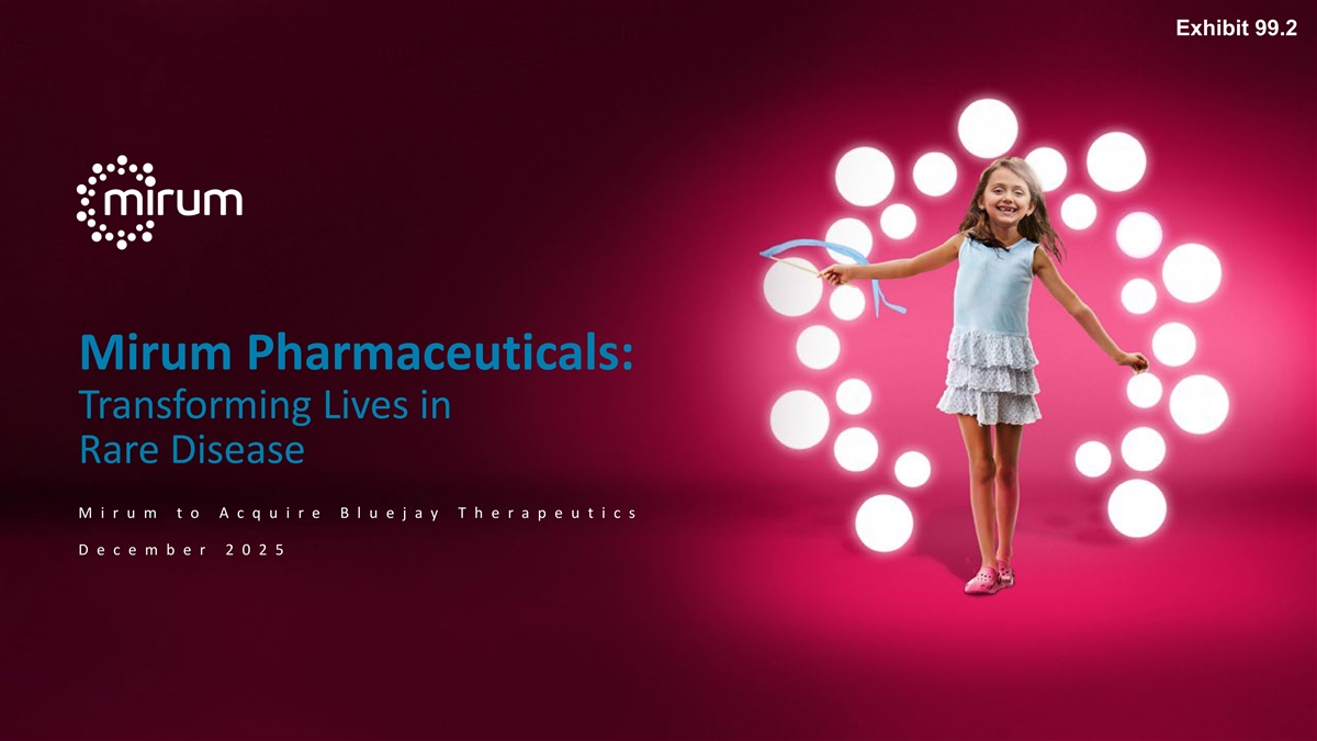 附件 99.2 Mirum制药:在罕见病中改变生活M iru m t o ac q u ir e b lu e ja y t h e r ap e u t ic s d e c e m b e r 2025
