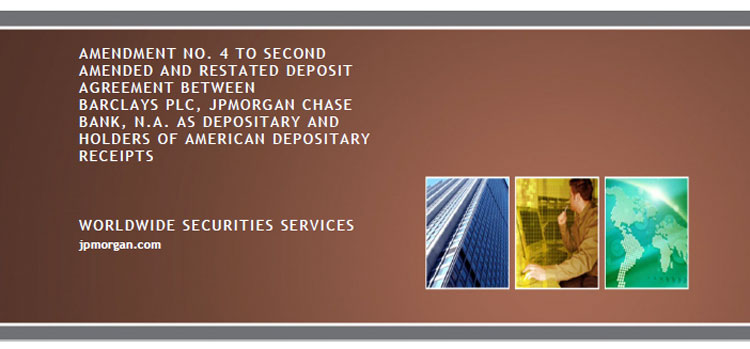 根据英国法律注册成立的Barclays PLC及其继任者(“公司”)、摩根大通 Bank,N.A.作为存托人(“存托人”)以及根据该协议不时发行的美国存托凭证(“ADR”)的所有持有人之间于2021年12月10日对日期为2008年8月11日的第二份经修订和重述的存款协议进行的第4号修订(“修订”)。