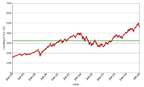 下图为2019年1月1日-2024年7月29日期间,根据Bloomberg L.P.(“彭博”)报告的每日收盘价计算的QQQ表现,未经独立核实。我们没有对来自彭博的公开信息进行任何独立审查或尽职调查。2024年07月29日,QQQ的收盘价为463.90美元,这是它的初始价格。绿线表示其票息障碍和下行阈值为324.73美元,相当于其初始价格的70.00%。QQQ的历史表现不应被视为其未来表现的指示,也不能就票据期限内任何时间,包括票面利率确定日,对QQQ的价格作出任何保证。我们无法向您保证,由于QQQ的表现,您的任何投资都会获得回报。