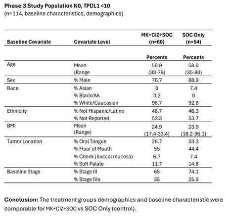 CEL-SCI在III期研究中完成了对目标人群的偏倚分析,为向包括FDA在内的监管机构提交数据以进行确认性注册研究做准备。包括患者年龄、性别、种族、肿瘤位置和分期在内的参数的详细数据证明了治疗组和控制组之间的平衡。因此,没有发现偏差,这支持了对Multikine功效结果的信心。