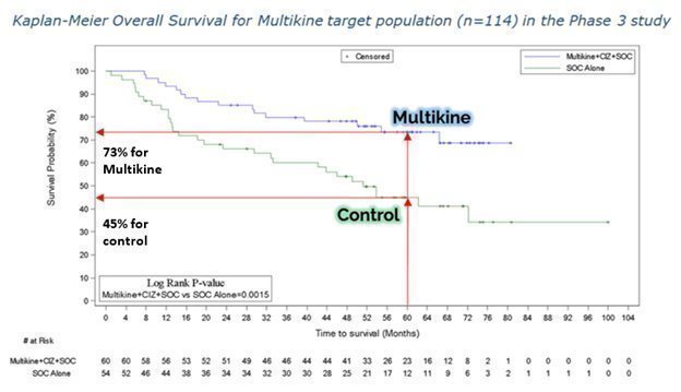 CEL-SCI的医生顾问告诉CEL-SCI,这两种生存曲线的早期分离(例如,在12个月时)为MultiKine的潜在积极作用增加了验证。