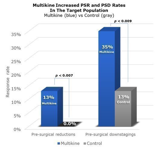 多因子通过诱导手术前反应起作用。CEL-SCI观察到Multikine治疗后具有统计学意义的术前反应,因此CEL-SCI认为如下: