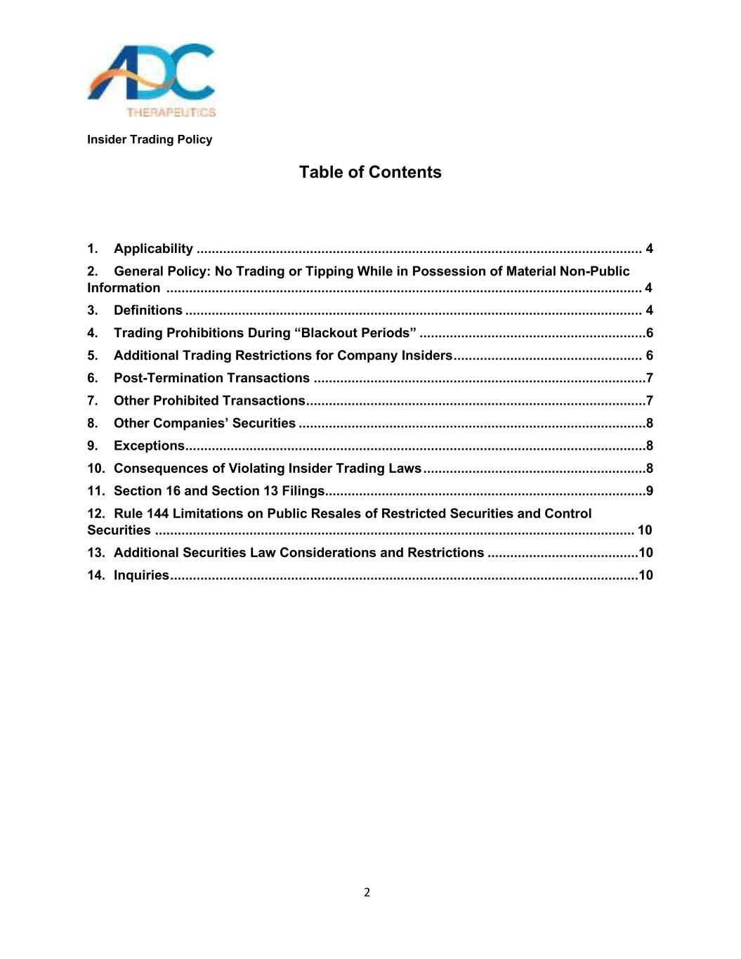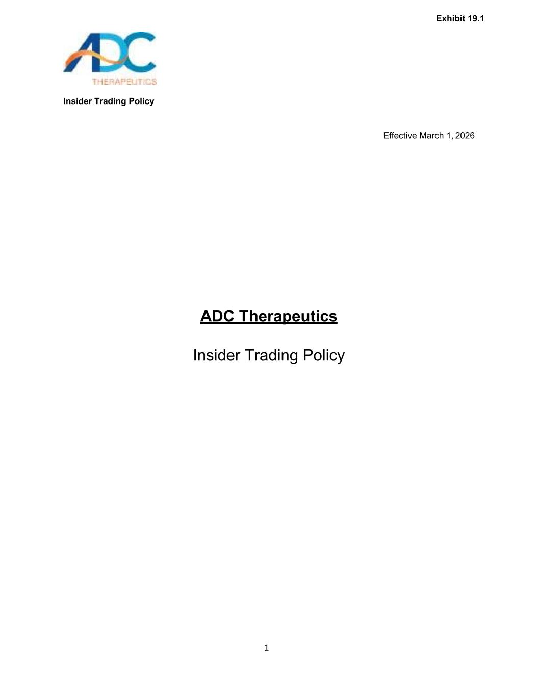 内幕交易政策1自2026年3月1日起生效ADC Therapeutics内幕交易政策附件 19.1