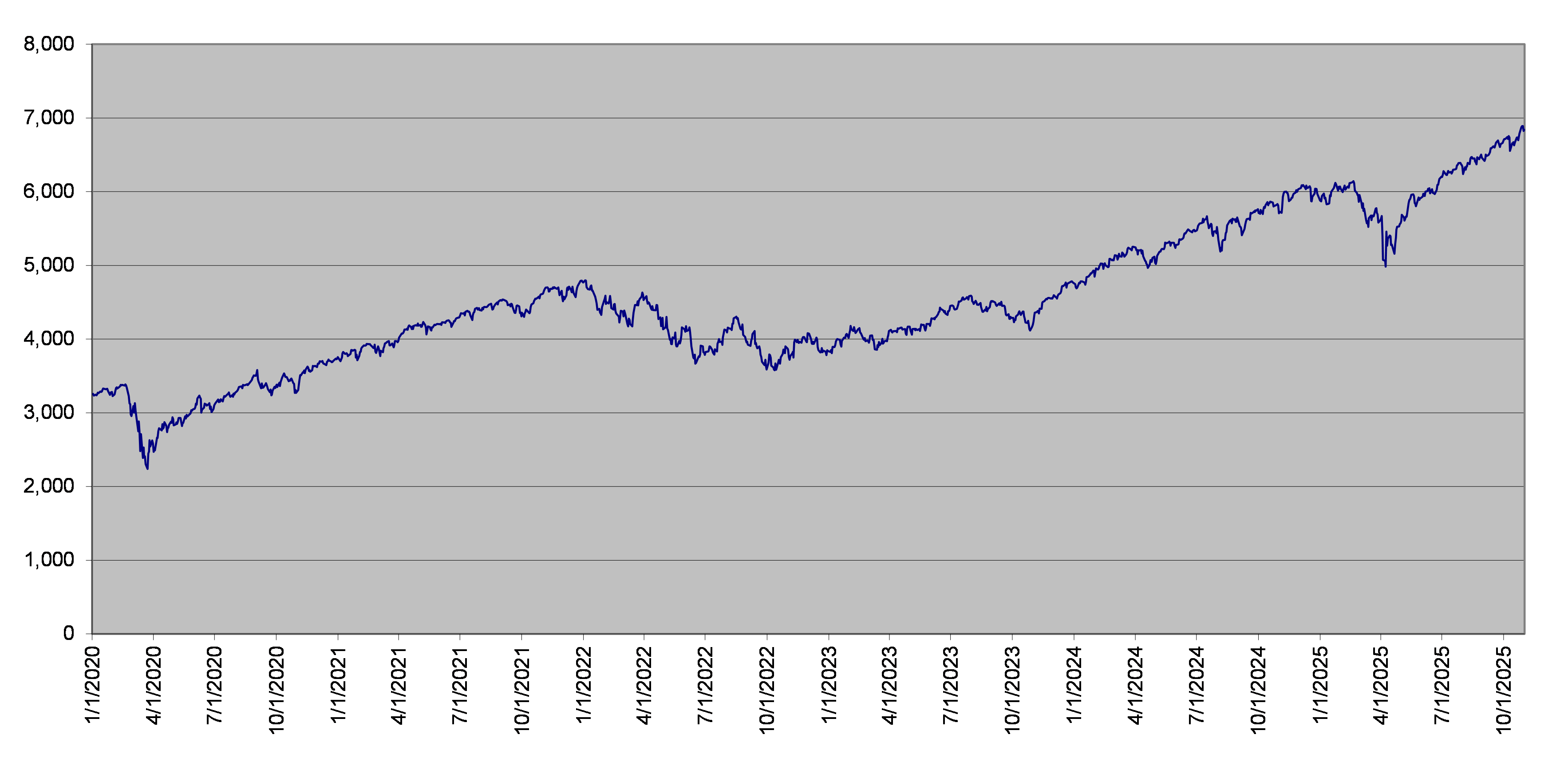 | SPX指数每日收盘水平 2020年1月1日至2025年10月31日 |