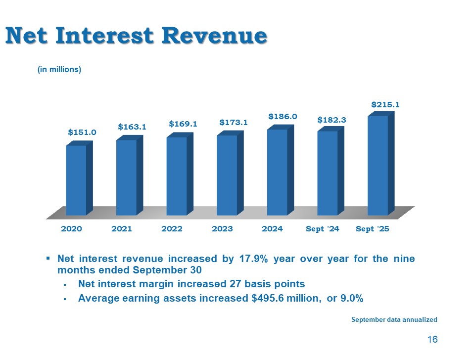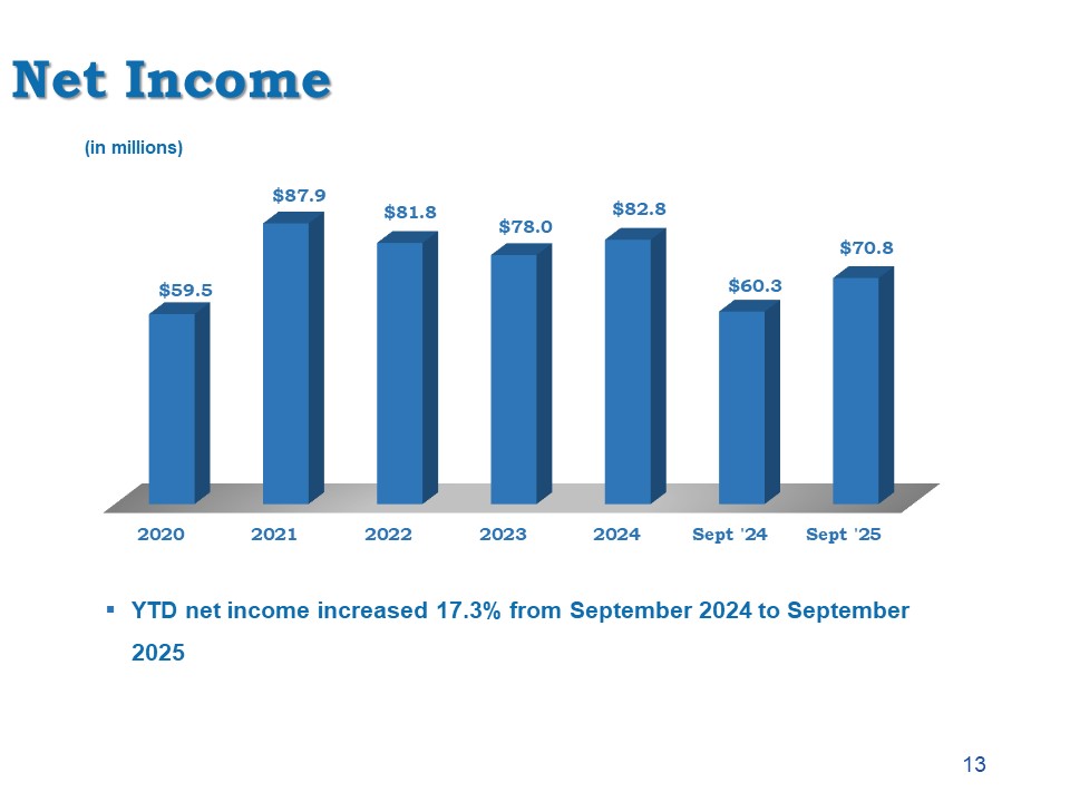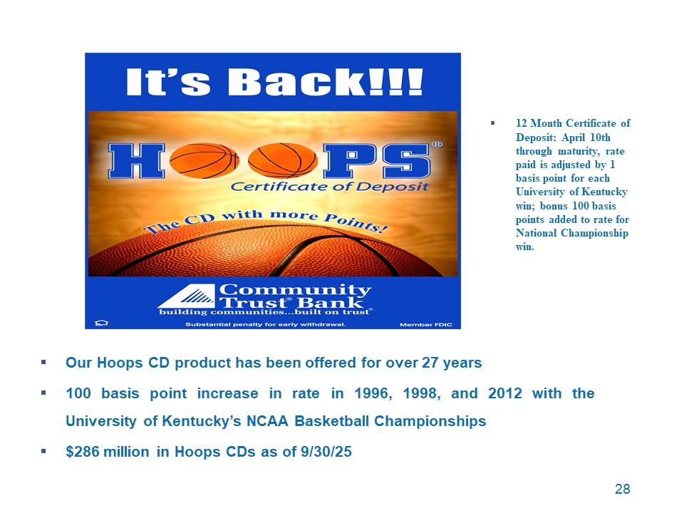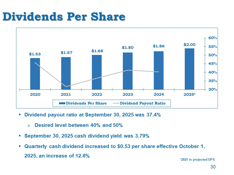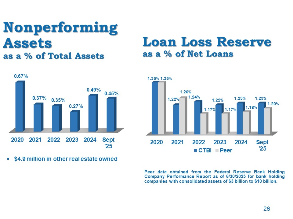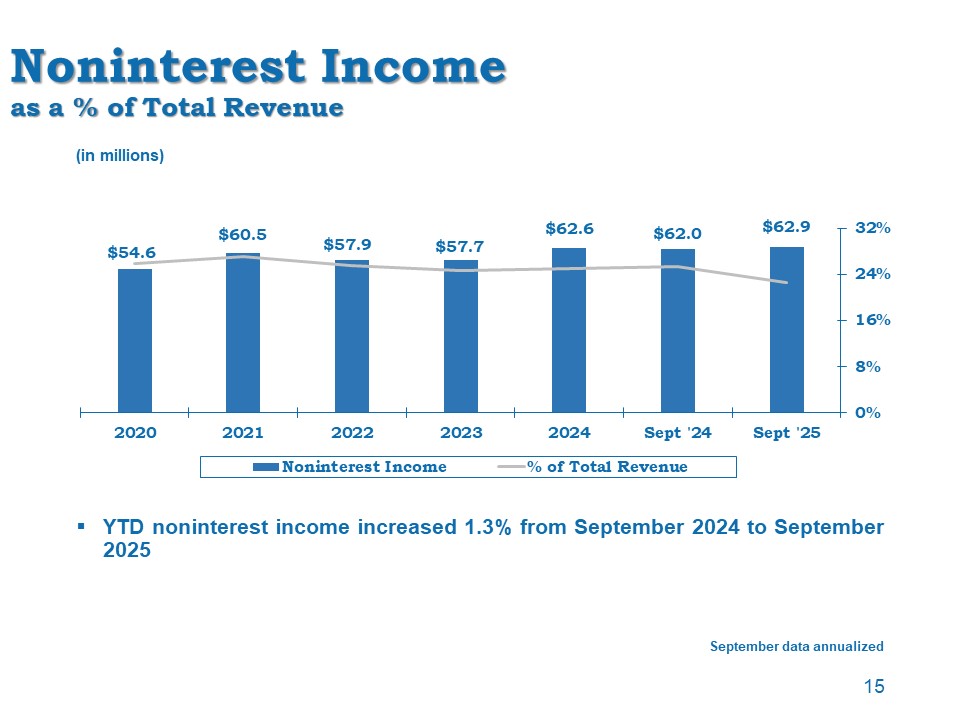 我们的银行业务特许中部地区东部地区东北部地区贷款-11亿美元贷款-10亿美元贷款-5.45亿美元存款-14亿美元存款-22亿美元存款-7.5亿美元•丹维尔•弗洛伊德/诺特/约翰逊•优势谷•列克星敦•哈扎德•阿什兰•斯特林山•派克维尔•弗莱明斯堡•里士满•拖格谷•萨默斯维尔•凡尔赛•怀特斯堡•温彻斯特中南部地区间接贷款-11亿美元贷款-9.13亿美元存款-12亿美元•坎贝尔斯维尔CTIC •拉福莱特管理资产-40亿美元(包括10亿美元CTB)•米德尔斯伯勒收入-年化2350万美元• Mt. Vernon •威廉斯堡•阿什兰• LaFollette •列克星敦• Pikeville • Versailles截至2025年9月30日的财务数据6
