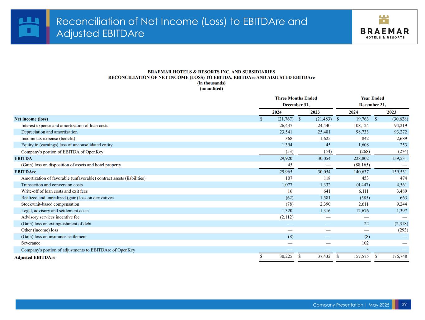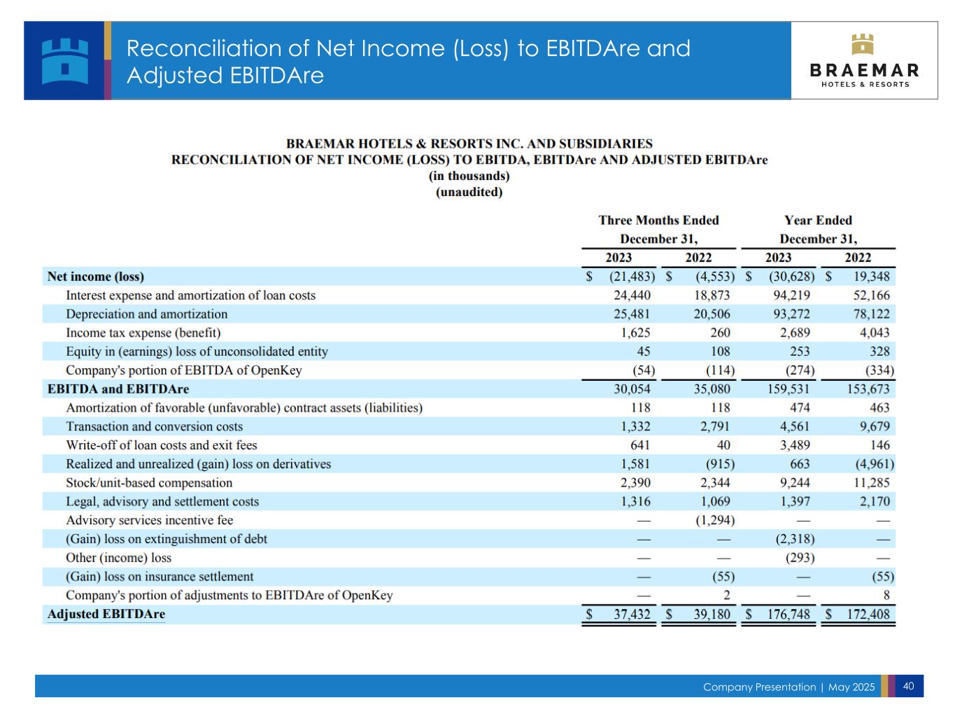 公司介绍| 2025年5月33净收益(亏损)与可比酒店EBITDA的调节
