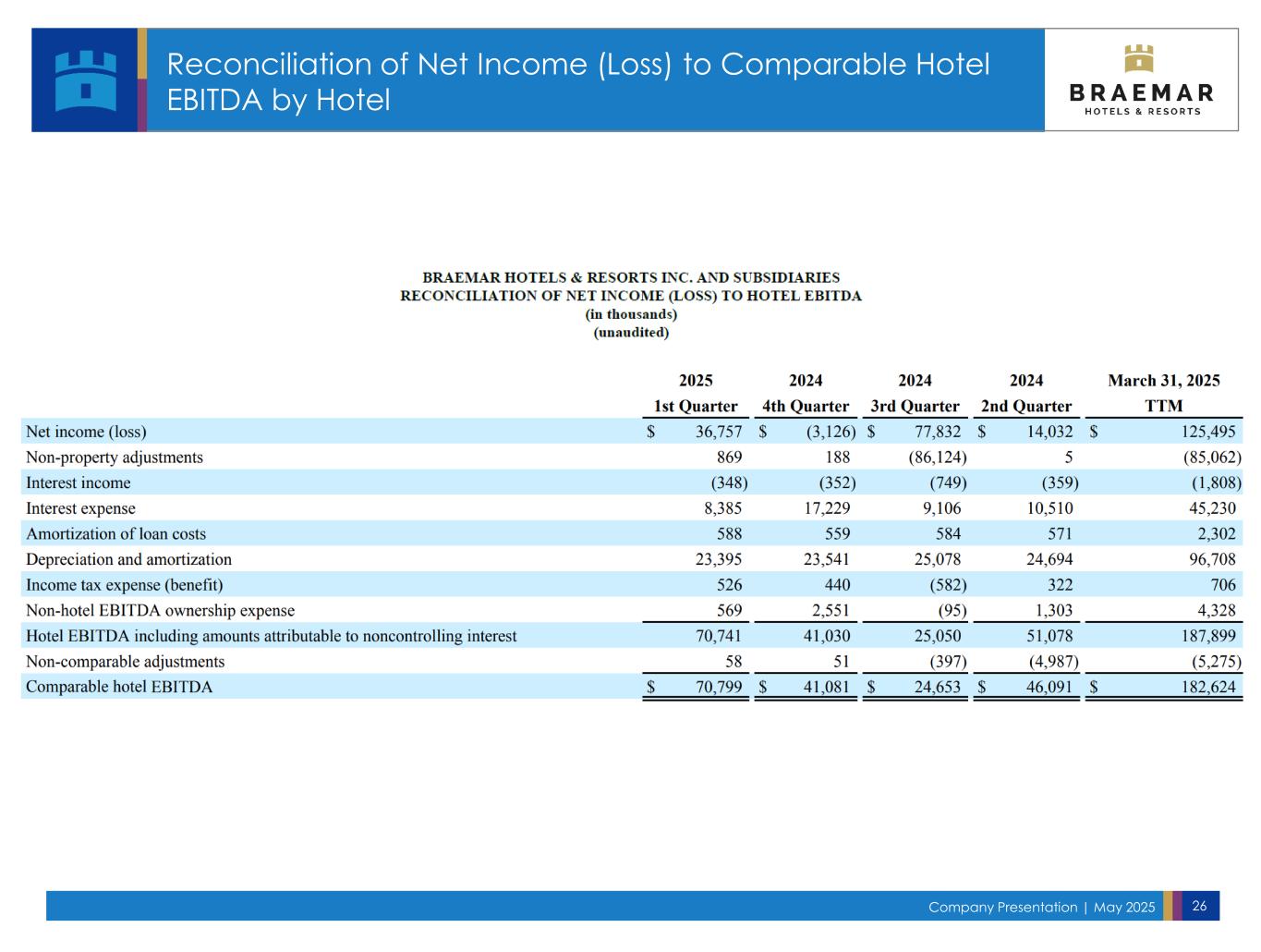公司介绍| 2025年5月26日净收入(亏损)与可比酒店EBITDA的对账按酒店