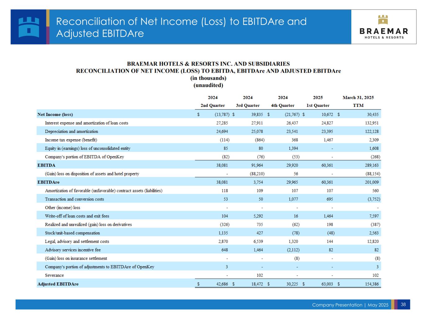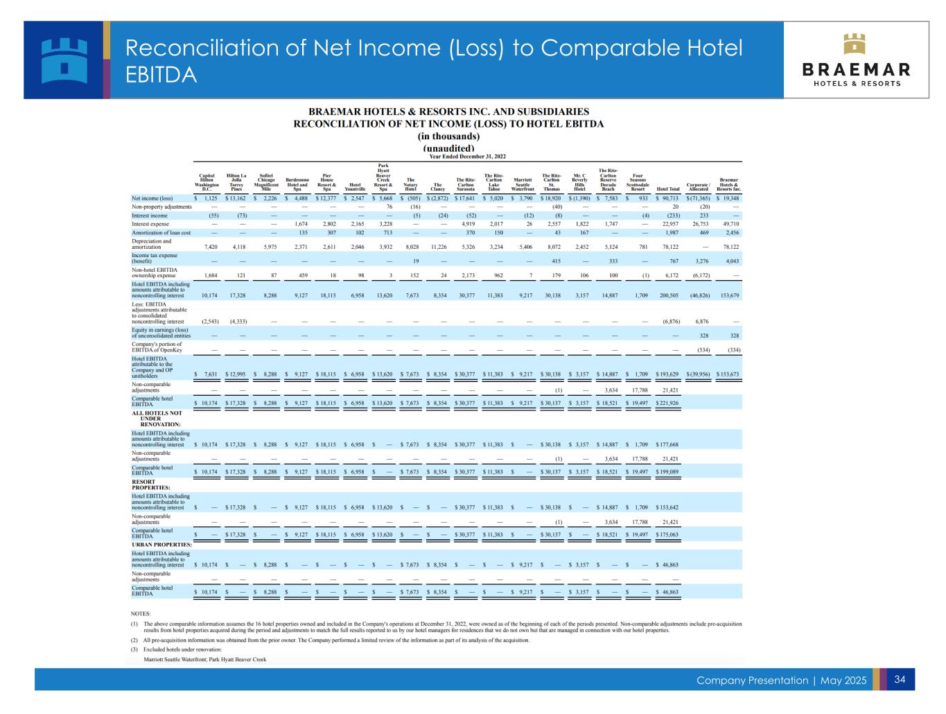 公司介绍| 2025年5月34净收益(亏损)与可比酒店EBITDA的调节