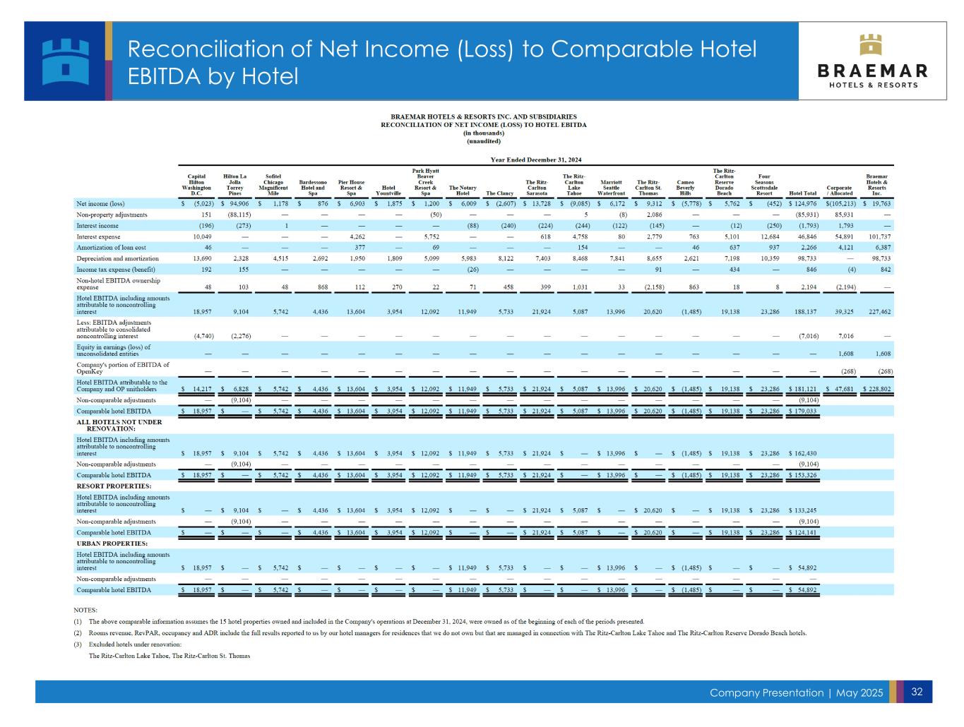 公司介绍| 2025年5月32按酒店划分的净收入(亏损)与可比酒店EBITDA的调节