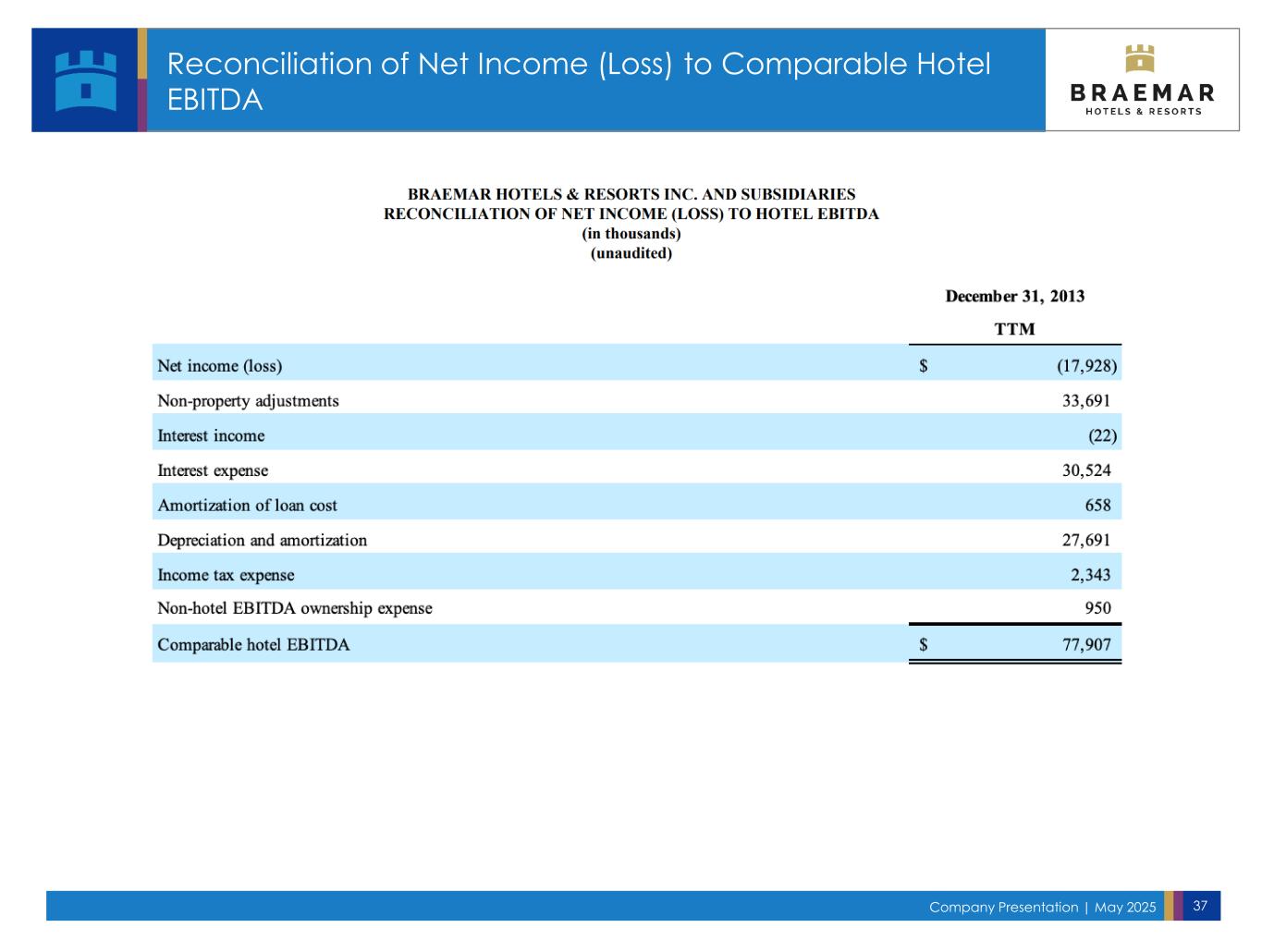 公司介绍| 2025年5月37净收益(亏损)与可比酒店EBITDA的调节