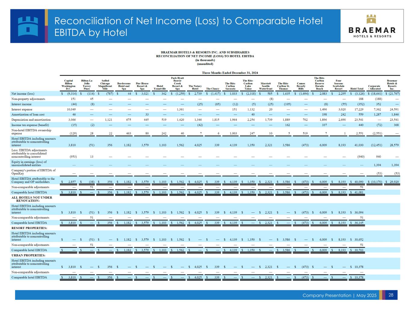 公司介绍| 2025年5月28日净收入(亏损)与可比酒店EBITDA的对账按酒店