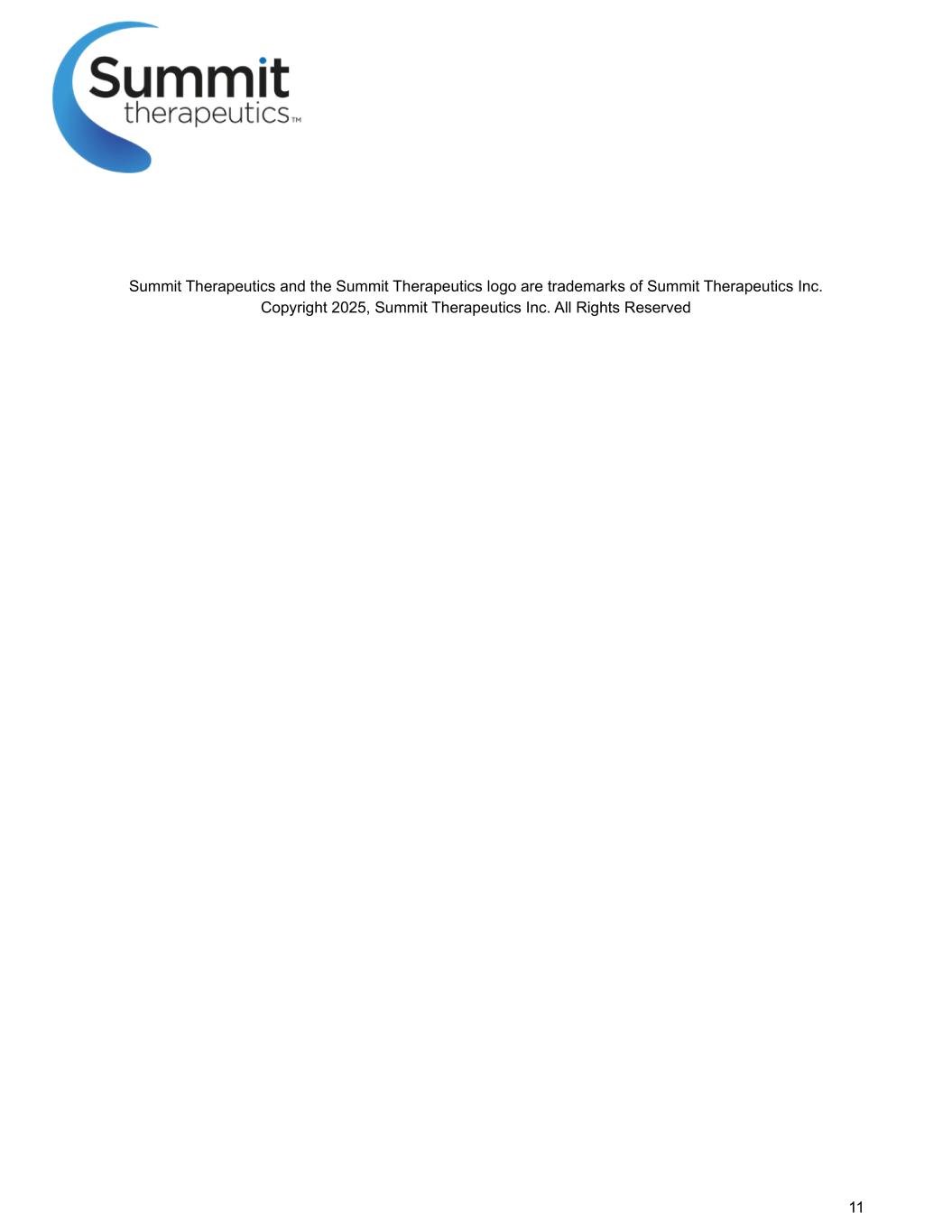 11 Summit Therapeutics及Summit Therapeutics标识为Summit Therapeutics Inc.的商标,TERM2版权所有2025,Summit Therapeutics Inc.保留所有权利