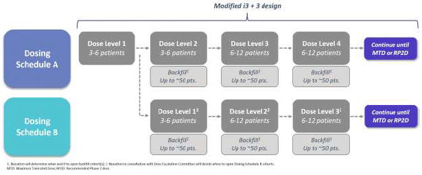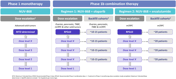 正在一项1b期剂量递增研究中评估与奥拉帕利联合用于治疗卵巢癌、胰腺癌、转移性去势抵抗性前列腺癌(“mCRPC”)、三阴性乳腺癌和其他实体瘤患者,以及与恩杂鲁胺联合用于治疗mCRPC患者。