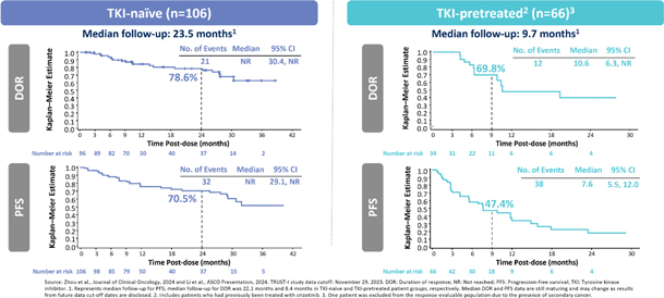 11.7个月,中位缓解持续时间未达到,中位无进展生存期为11.7个月。中位无进展生存期数据仍在成熟,可能会随着未来数据截止日期结果的披露而发生变化。