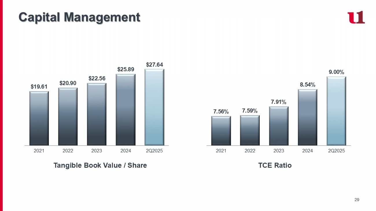 29资本管理有形账面价值/股份TCE比率$ 19.61 $ 20.90 $ 22.56 $ 25.89 $ 27.64 2021202220232024 2Q2025 7.56% 7.59% 7.91% 8.54% 9.00% 2021202220232024 2Q2025