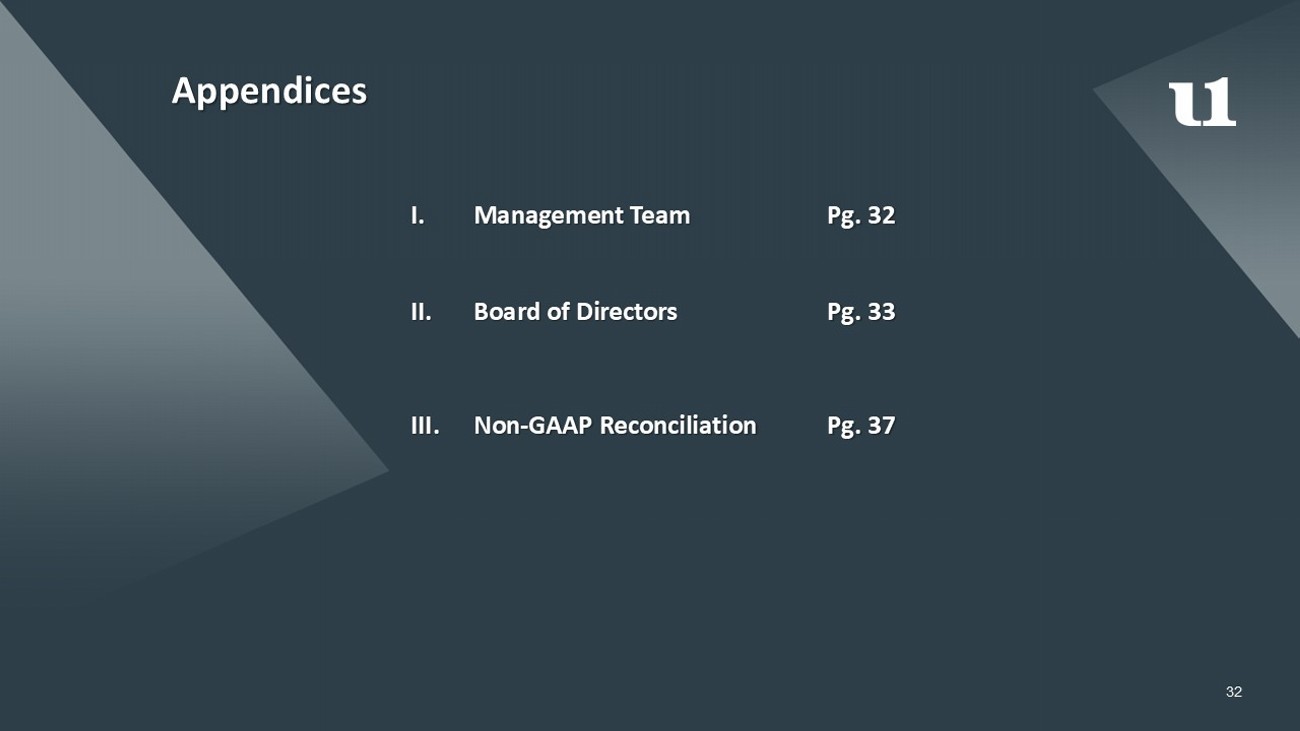 3232一、二。iii.管理团队董事会非公认会计原则和解pg。32 pg。33 pg。37附录