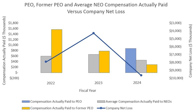 下图列出了实际支付给我们当前PEO和前PEO的补偿、实际支付给我们非PEO NEO的补偿的平均值以及我们在最近完成的三个财政年度的净亏损之间的关系。
