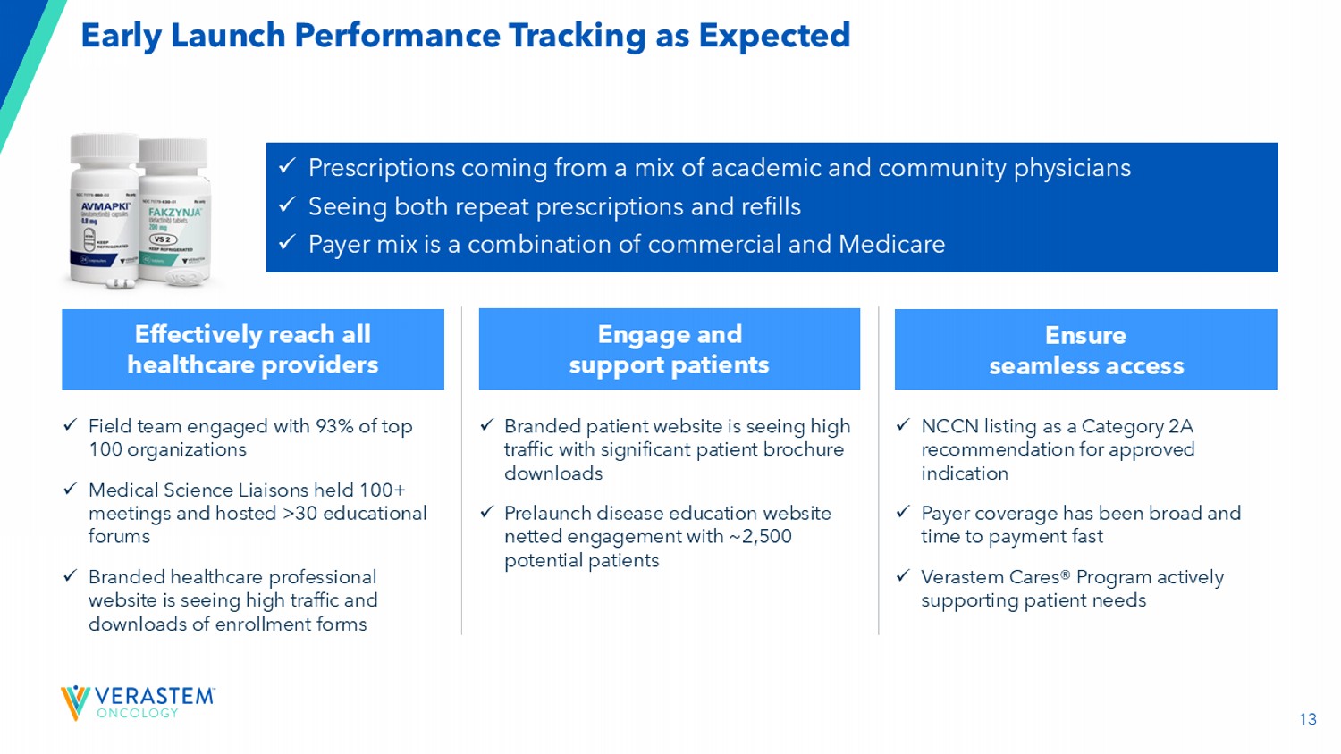 12令人鼓舞的发布势头加强了推动成功的战略要务在上市的前六周内实现了210万美元的净产品收入首位患者接受了产品:2025年5月22日x首次-专门针对KRAS患者的首次批准治疗-比PDUFA日期提前近两个月的突变复发性LGSOC x紧急、未满足的患者需求和重大的市场机会x经验丰富且充满活力的现场团队x两年的发布准备x高医生热情和参与度x有效的数字环绕声和高网站流量x广泛的付款人教育