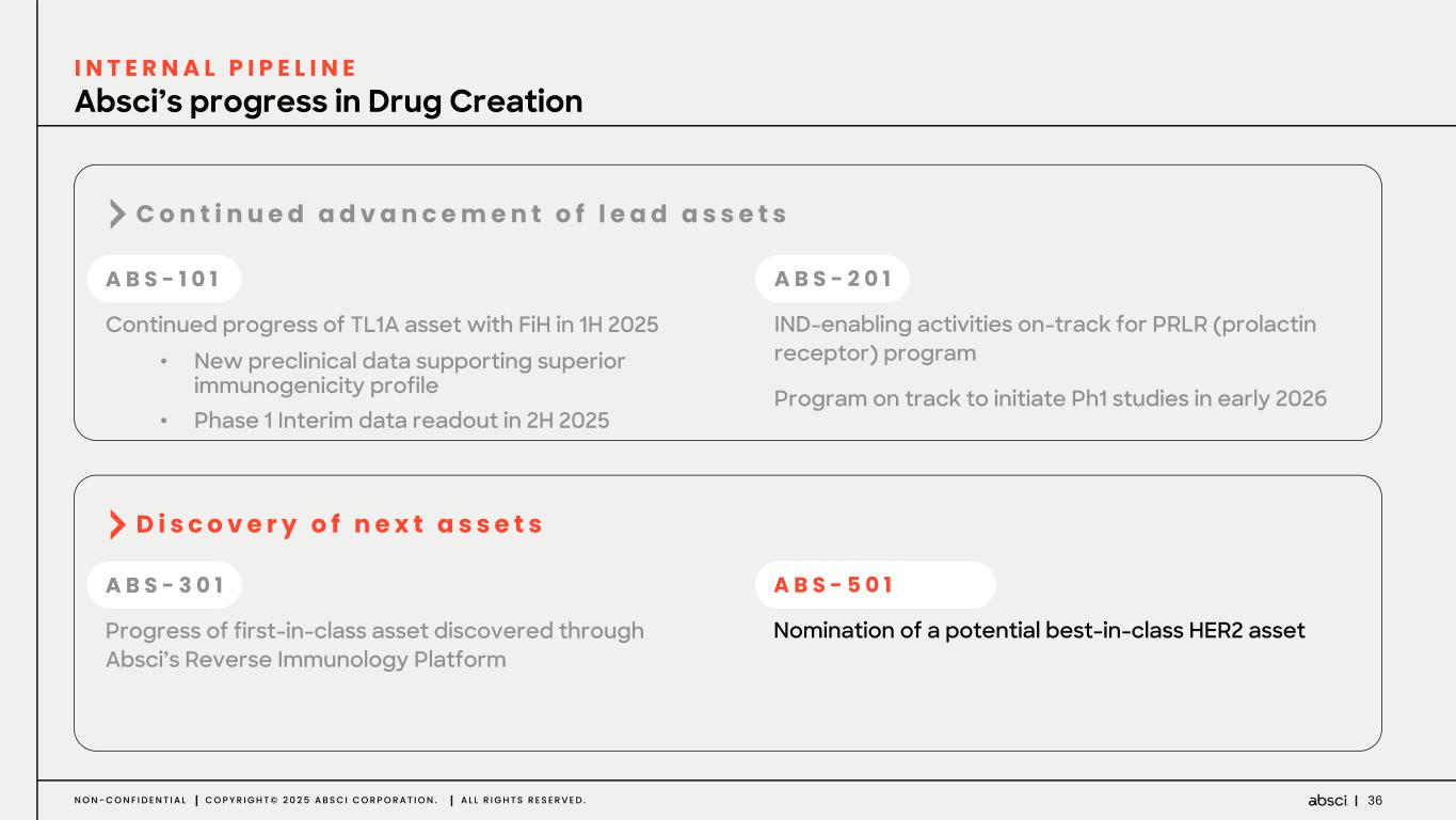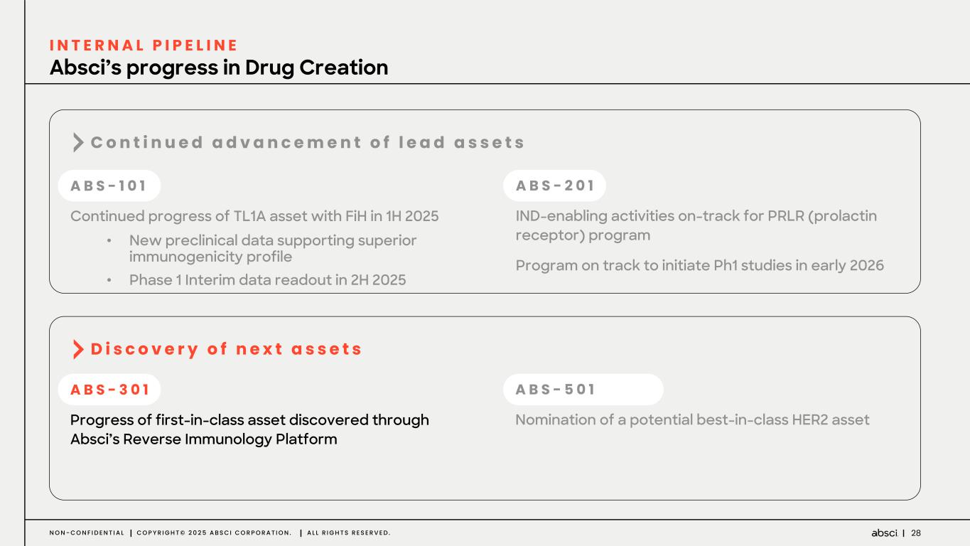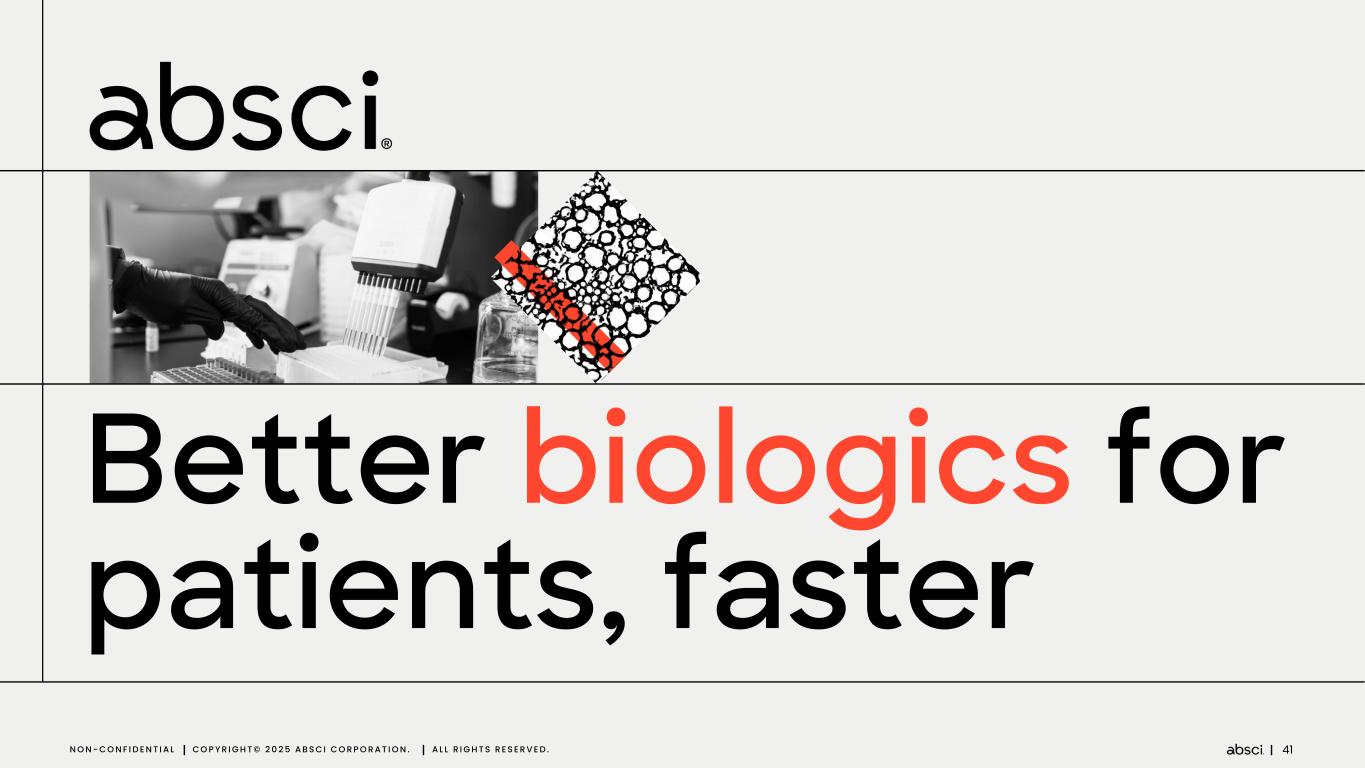 为患者提供更好的生物制剂,更快的41N O N-C O N F I D E N T I A L C O P Y R I G H T©2025 A B S C I C O R P O R A T I O N. A L L R I G H T S R E S E R V E D。