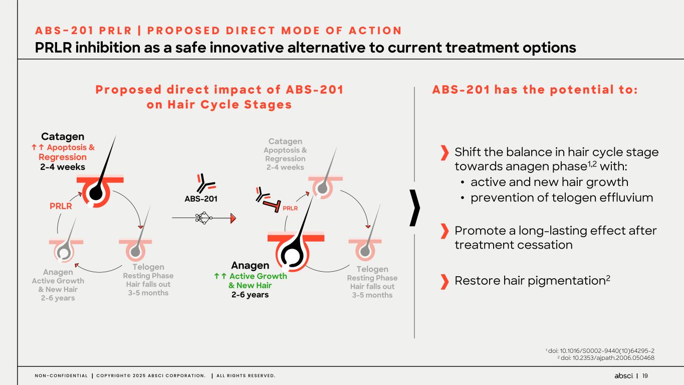19N O N-C O N F I D E N T I A L C O P Y R I G H T©2025 A B S C I C O R P O R A T I O N. A L L R I G H T S R E S E R V E D. PRLR抑制作为目前治疗方案的安全创新替代方案A B S-2 0 1 P R L R | P R O P O S E D D I R E C T M O D E O F A C T I O N P R O P O S e d d i r e c t i m p a c t o f a b s-2 0 1 o n h a i r c y c l e s t a g e s a b s-2 0 1h a s t h e e e e e e e e e e e e e e e e e e e e e e e e e e e e e e e e e e e e e e e e e e e e e e e e e e e e e e e e e e e e e e e e e e e e e e e e e e e e e e e e e e e e e e e e e e e e e e e e e e e e e e e e e e e e e e e e e e e e e e e e e e e e e e e e e e e e e e e e e e e e e e e e e e e e e e e e e e e e e e e e e e e e e e e e e e e e e e e e e e e e e e e e e e e e e e e和新发生长•预防休止期脱出恢复头发色素2促进治疗停止后的持久效果1 doi:10.10 16/S0002-9440(10)64295-2 2 doi:10.2353/ajpath.2006.050468