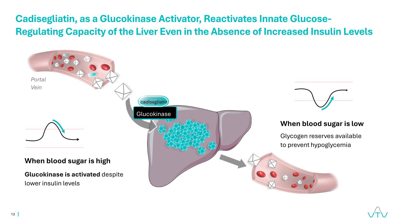 13 Cadisegliatin,作为一种葡萄糖激酶激活剂,即使在高血糖时胰岛素水平没有增加的情况下,也能重新激活肝脏的先天葡萄糖调节能力,尽管在低血糖时胰岛素水平较低,但葡萄糖激酶仍被激活,可用于预防低血糖的糖原储备门静脉cadisegliatin葡萄糖激酶