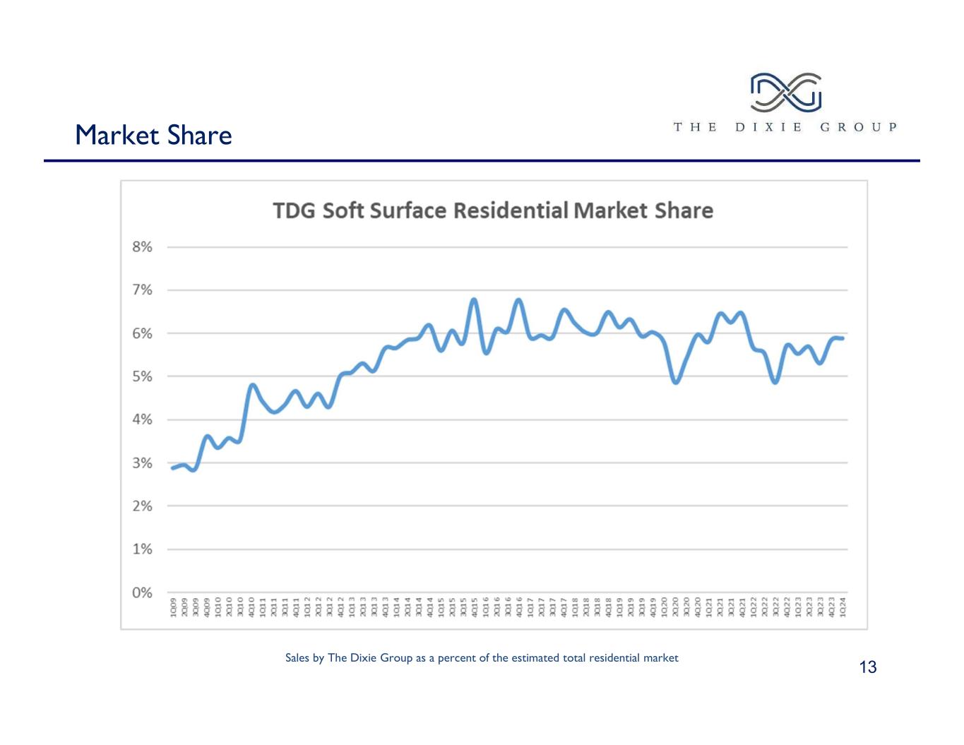 市场份额13 迪克希的销售额占住宅市场估计总量的百分比
