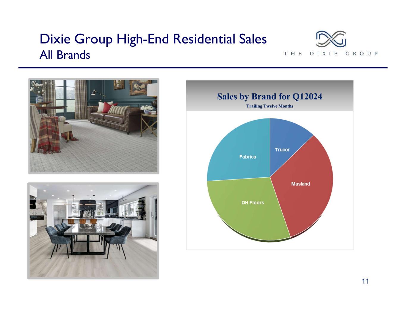Dixie Group High-end Residential Sales All Brands Sales by Channel for Q1 2024 trailing 12 months The company believes that a significant part of retail sales also involves a designer。12零售商设计师其他建设者