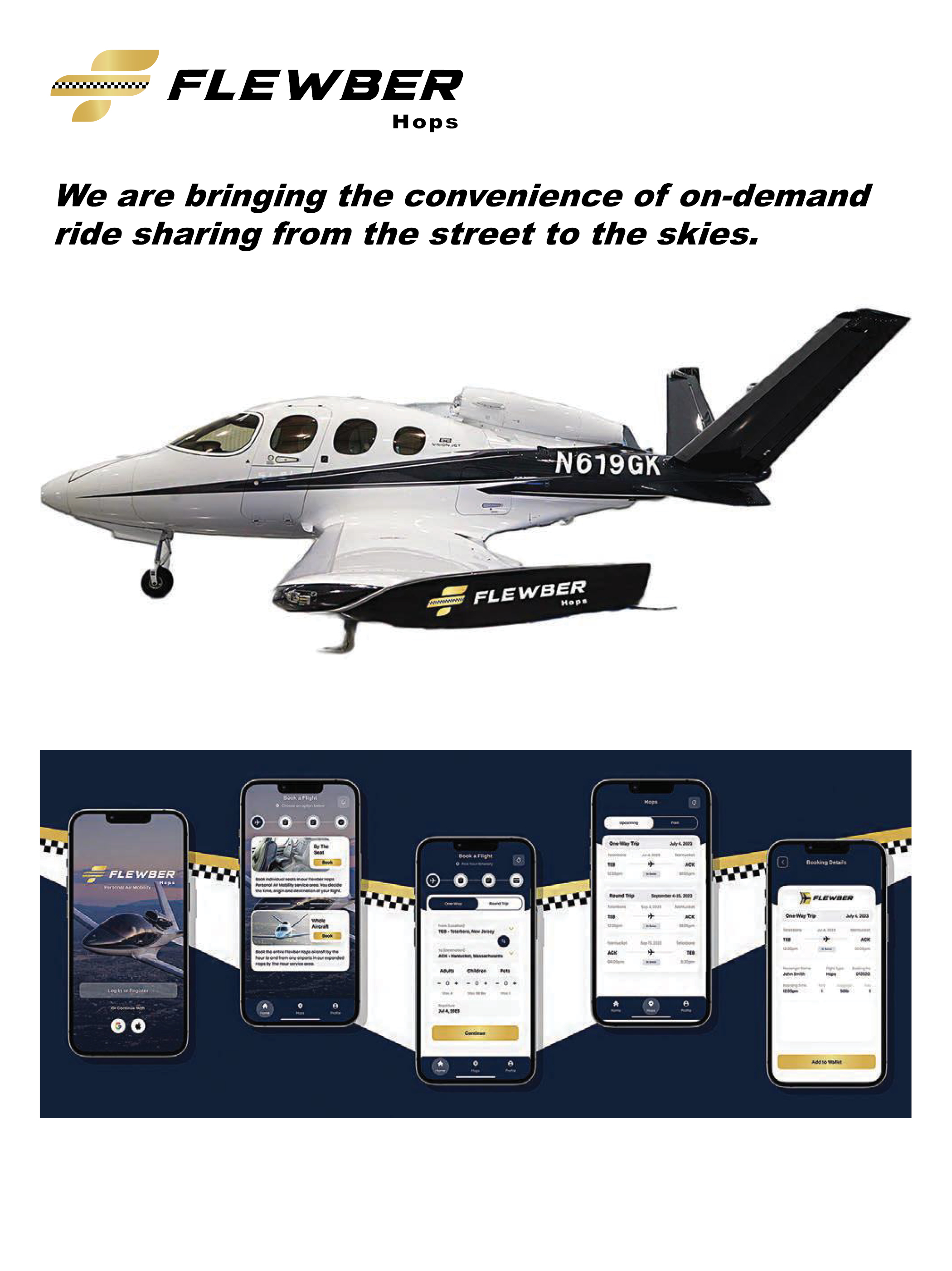到2024年第一季度末,我们计划为私人航空旅行带来一种有点类似于按需拼车便利的按需服务,现在用户可以通过使用手机上的应用程序预订汽车服务。根据联邦法规,按需操作是指,除其他事项外,与客户或客户代表具体协商出发时间、出发地点和到达地点的任何操作。我们计划通过Flewber应用程序及其目前提供的服务,以及我们计划在不久的将来通过我们即将推出的Flewber Hops空中出租车服务推出的附加服务,提供更多的私人空中旅行机会来做到这一点。尽管我们预计我们的按需服务不会像按需提供的陆上拼车服务那样在几分钟内为客户提供乘车或航班,但我们相信,Flewber应用程序将为旅行者提供一个简单、用户友好的资源,可在他们的手机上访问,以预订当地和地区的空中旅行(即从大约430个主要机场和大约5100个较小和位置更便利的美国当地和地区机场出发的大约一小时或更短的航班),乘坐由经认证的运营商运营的私人航班,并且,在Flewber Hops的情况下,如果可用,我们自己的空中出租车,使用预订流程,就我们的Flewber Hops空中出租车服务而言,只有当它完全投入运营时,我们认为,在大多数情况下,从开始预订到登上私人飞机不会超过两个小时。Flewber Hops将仅适用于在我们自己的飞机上预订航班,不会为客户提供在第三方飞机上预订航班的能力。