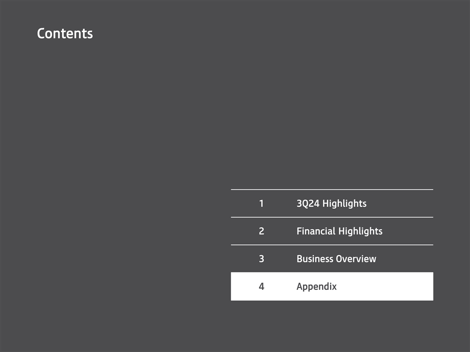 目录1 3Q24亮点2财务亮点3业务概览4附录