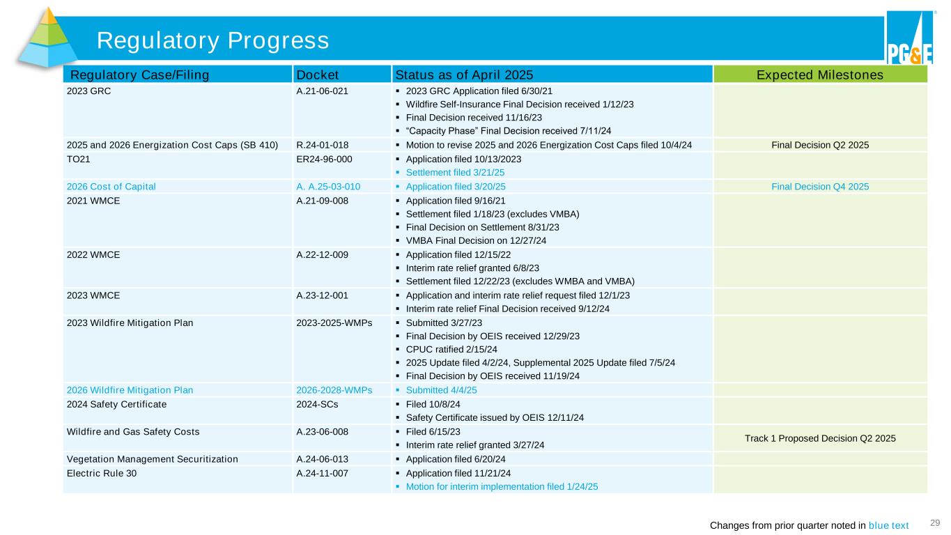 29监管进展监管案例/截至2025年4月的备案案卷状态预期里程碑2023 GRC A.21-06-021▪2023 GRC申请提交6/30/21▪野火自保最终决定收到1/12/23▪收到最后决定11/16/23▪“产能阶段”最终决定收到7/11/242025和2026年能化成本上限(SB 410)R.24-01-018▪修订2025的动议和2026年能源化成本上限提交10/4/24最终决定Q2 2025 TO21 ER24-96-000▪提出的申请10/13/2023▪结算备案3/21/252026资本成本A. A.25-03-010▪申请提交3/20/25最终决定Q4 20252021 WMCE A.21-09-008▪申请提交9/16/21▪1/18/23提交的和解(不包括VMBA)▪关于和解的最后决定8/31/23▪VMBA Final Decision on 12/27/242022 WMCE A.22-12-009▪申请提交12/15/22▪给予临时利率减免6/8/23▪12/22/23提交的和解(不包括WMBA和VMBA)2023 WMCE A.23-12-001▪应用程序和临时税率减免请求提交12/1/23▪收到临时利率减免最终决定9/12/242023年野火缓解计划2023-2025-WMPs▪已提交3/27/23▪OEIS的最终决定收到12/29/23▪CPUC批准2/15/24▪2025年更新提交4/2/24,提交2025年补充更新7/5/24▪OEIS的最终决定收到11/19/242026野火缓解计划2026-2028-WMPs▪提交4/4/252024安全证书2024-SCs▪提起10/8/24▪OEIS颁发的安全证书12/11/24野火和气体安全费用A.23-06-008▪提起6/15/23▪准予临时费率减免3/27/24 Track 1建议的决定Q2 2025植被管理证券化A.24-06-013▪提出的申请6/20/24电气规则30 A.24-11-007▪申请提交11/21/24▪临时执行动议提交1/24/25蓝字中注明与上一季度的变化
