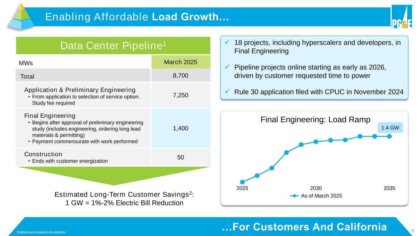 5…支持客户和加州的野心简单、实惠的模型…简单、实惠的模型2027 – 2030 GRC预览▪投资于安全、可靠性和有益的负荷增长▪将储蓄转嫁给客户▪尽量减少客户账单增加▪将于5月15日提交申请,2025▪GRC小计使能因素运维成本降低之外的额外客户节省机会(非燃料)2电力负荷增长3其他(包括高效融资)4客户资本投资客户账单:在或低于假设通货膨胀2% 1%-3% 2%~9% 5%-7% 2%-4%计划1 2%-3% 2%-4% 2% 9%-10% 6%-9% 1%-3% 2%-3% 2%-4% 29%-10% 6%-9% 1%-3%机会1 1%-尾注包含在附录中