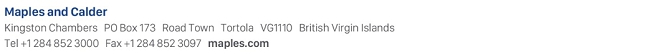 | 4.2 | 为根据英属维尔京群岛法律保持公司在公司事务注册处处长的良好信誉,必须支付年度备案费用,并在法律规定的时间范围内向公司事务注册处处长作出某些法定备案和回报。由于未能按时支付年度备案费用,或未能按时进行某些备案或申报,或未能证明在相关情况下遵守了某些法定经济实质要求,公司可能会被从公司名册上除名并解散。 |