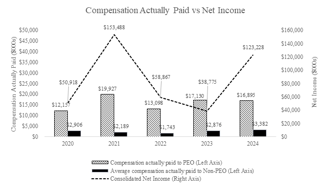 我们的审计委员会选择我们的独立注册会计师事务所(我们的“审计师”),就我们的财务报告的充分性、对财务报告的内部控制和审计过程与我们的审计师和管理层进行协商,并考虑由我们的审计师提供的任何允许的非审计服务。该委员会还批准所有关联方交易,监督我们的企业风险管理计划的管理,监督我们的商业行为和道德准则(“Code of Ethics”)的遵守情况,并管理我们的举报人投诉和调查政策(“举报人政策”),包括建立有关接收、保留和处理我们收到的有关会计、内部控制和审计事项的投诉的程序,以及员工匿名提交涉及可疑会计或审计事项的投诉的程序。委员会在截至2024年12月31日的一年中举行了14次会议。