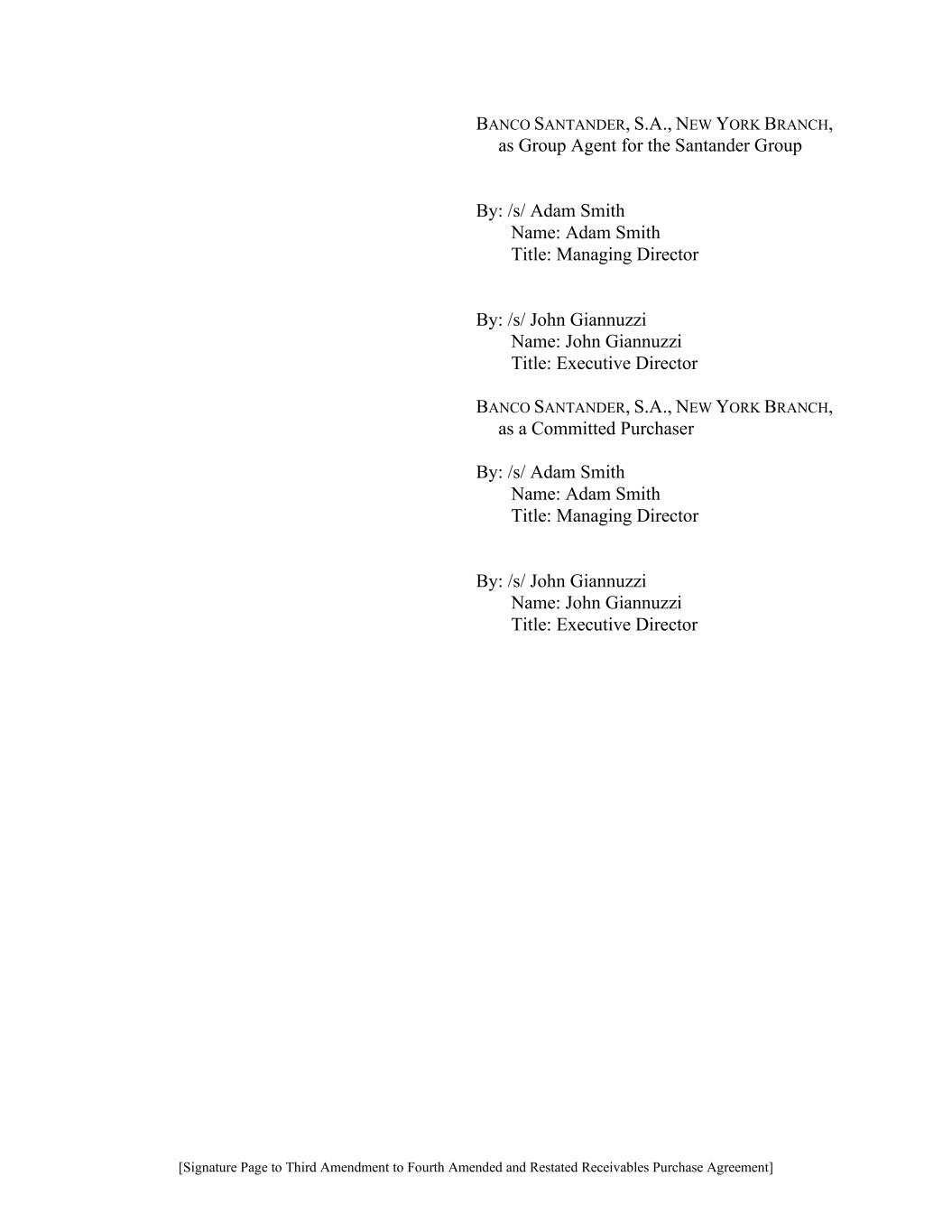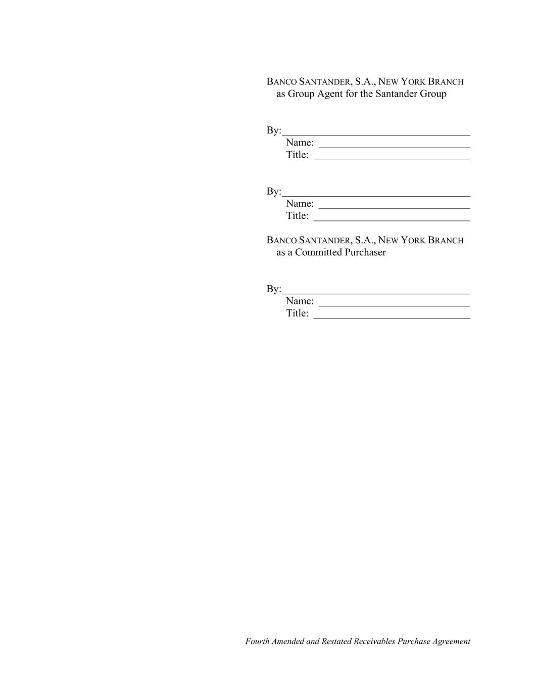 第四次修订和重述的应收账款购买协议BANCO SANTANDER,S.A.,New York Branch作为Santander Group的集团代理,由:__________________________________________ Name:__________________________________________ Title:__________________________________ By:__________________________________________ Name:__________________________