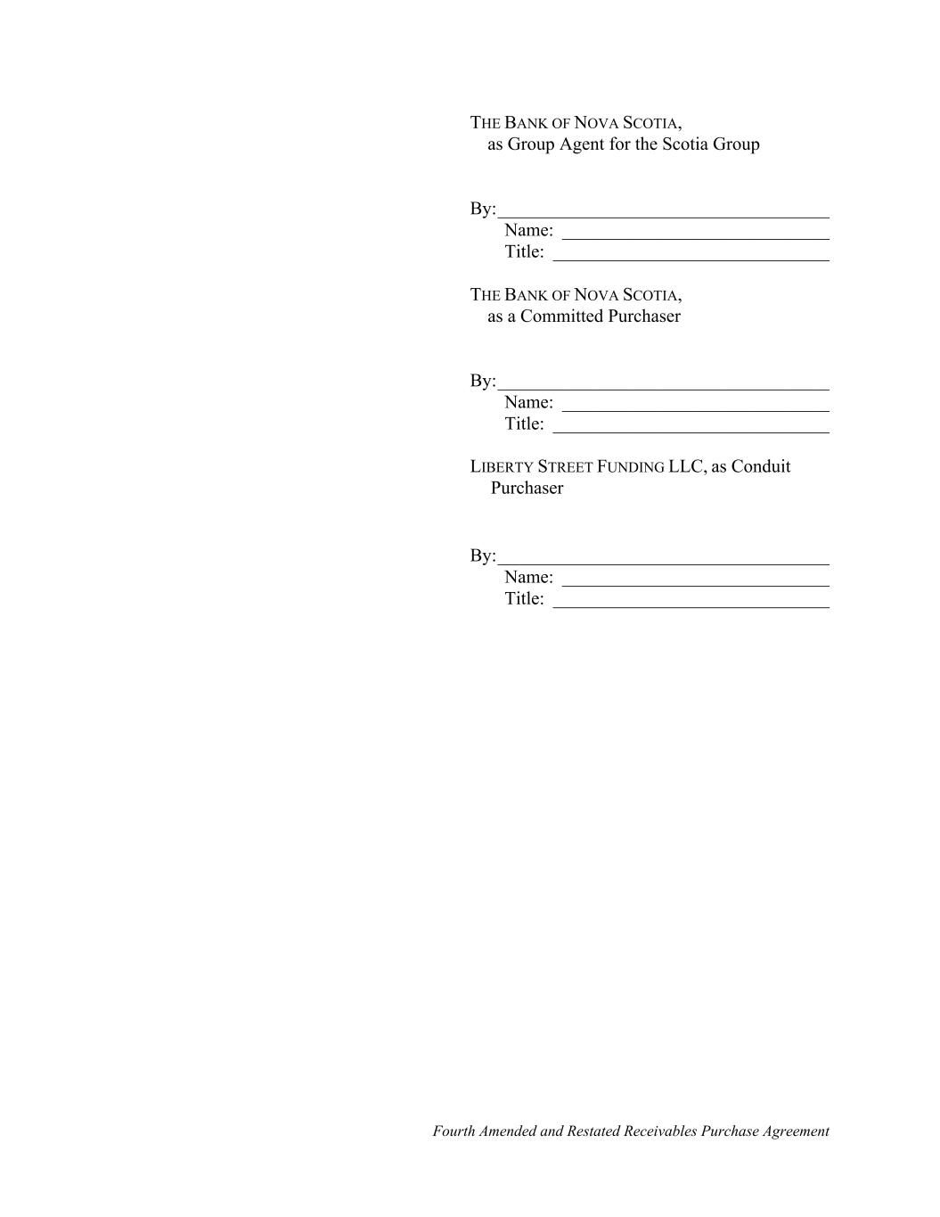 第四次修订和重述的应收账款购买协议新斯科舍银行,作为Scotia集团的集团代理由:______________________________________名称:__________________________________标题:__________________________________________新斯科舍银行,作为承诺买方由:______________________________________________