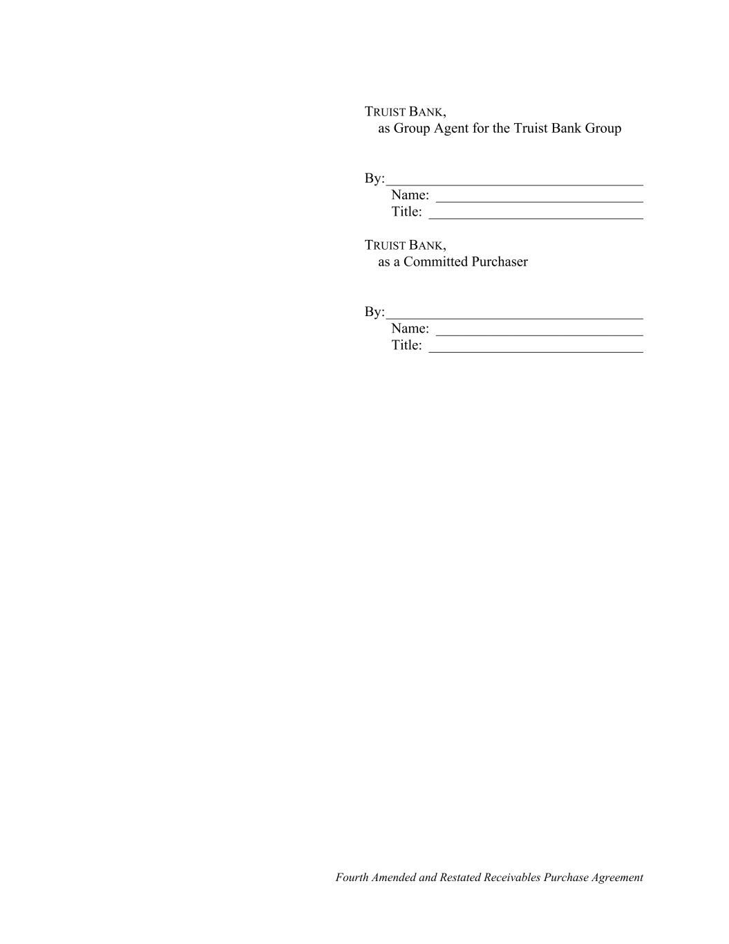 第四次经修订和重述的应收账款购买协议TRUIST Bank,作为Truist Bank Group的集团代理由:__________________________________________ Name:__________________________________ title:__________________________________________ TRUIST Bank,作为承诺买方由:______________________________________________ Name:______________________