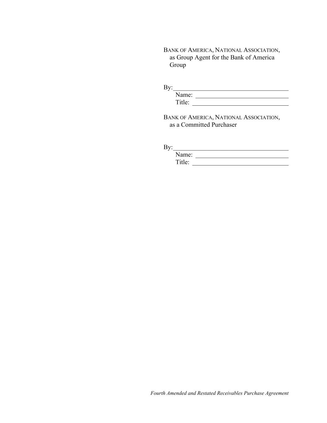 第四次修订和重述的应收账款购买协议美国银行,全国协会,作为美国银行集团的集团代理由:______________________________________名称:__________________________________标题:__________________________________美国银行,全国协会,作为承诺购买者由:__________________________________