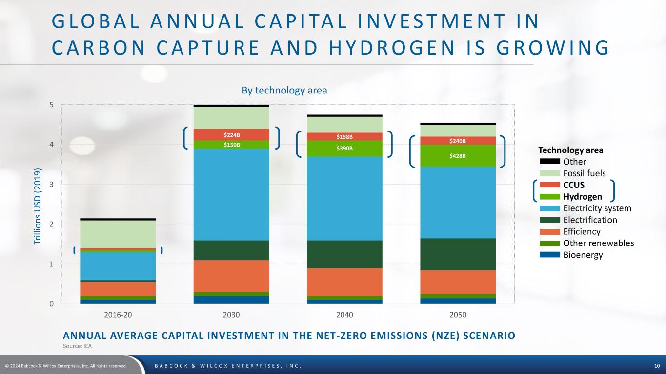 © 2024 Babcock & Wilcox Enterprises, Inc.版权所有。B A B C O C K & W I L C O X E N T E R P R I S E S,I N C. 10 G L O B A L A N N U A L C A P I TA L I N V E S T M E N T I N C A R B O N C A P T U R E A N D H Y D R O G E N I S G R O W I N G TR ill io ns U SD(20019)012345 2016-20 203020402050按技术领域技术领域其他化石燃料CCUS氢电系统电气化效率其他可再生能源生物能源年平均资本投资净零排放(NZE)情景资料来源:IEA $ 224B $ 150B $ 158B $ 390B $ 240B $ 428B