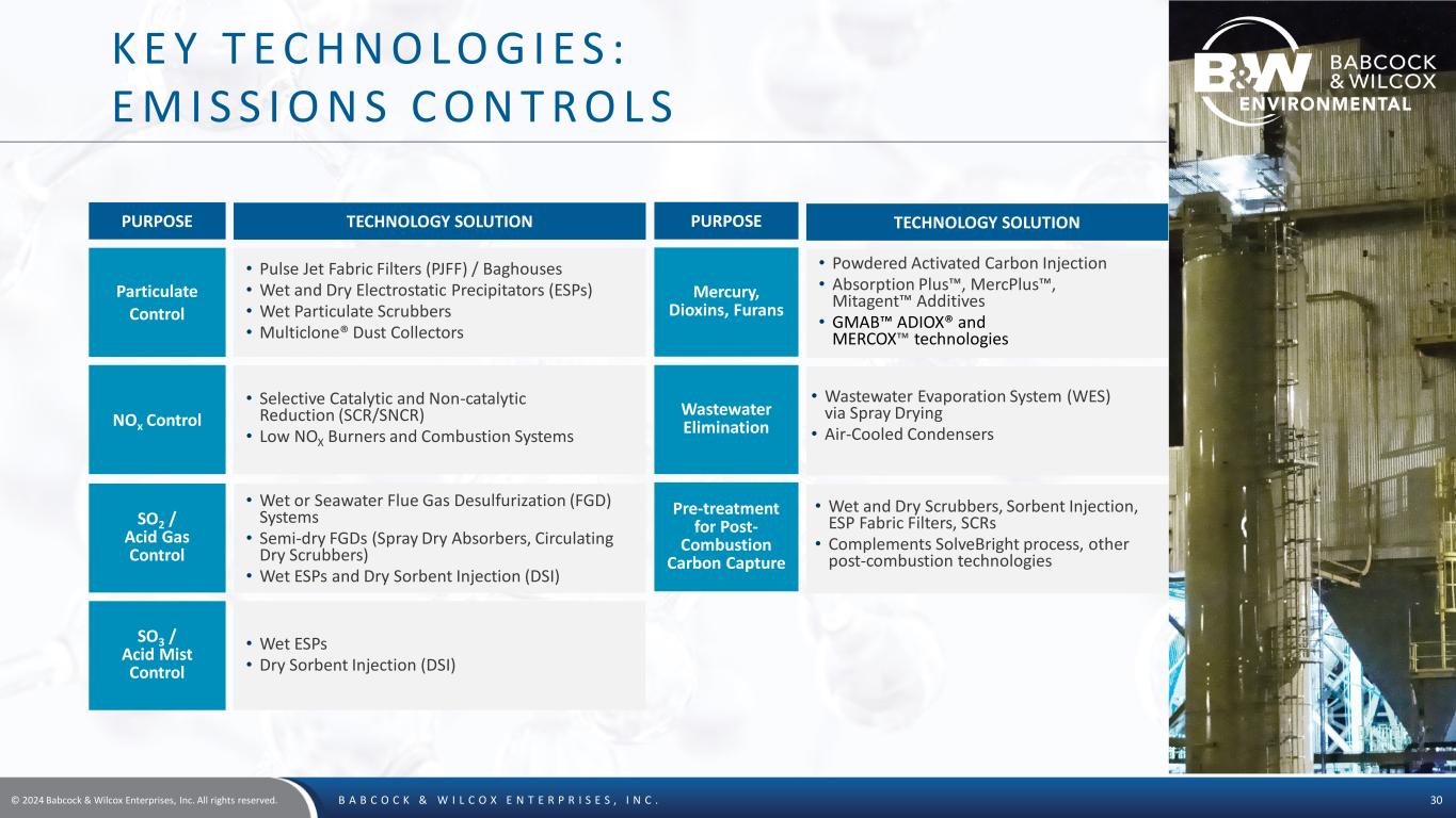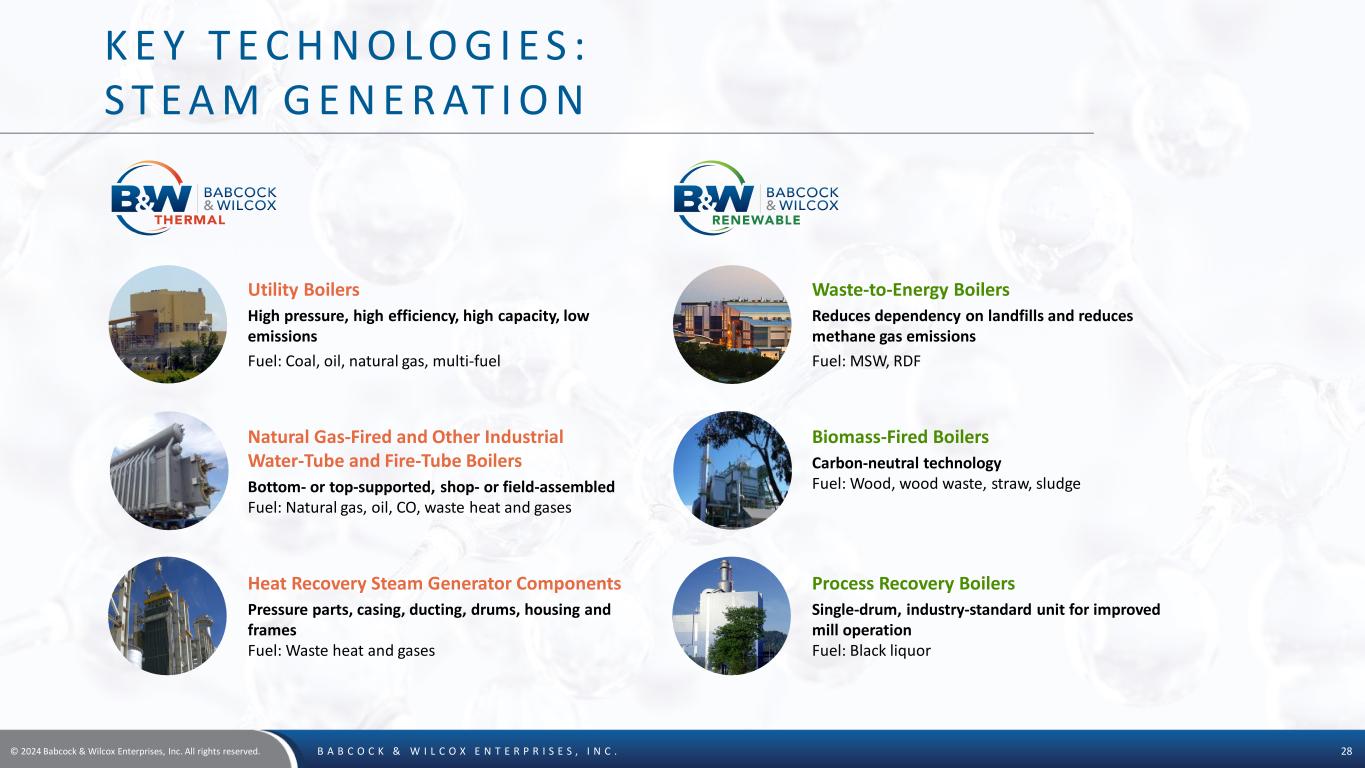 © 2024 Babcock & Wilcox Enterprises, Inc.版权所有。B A B C O C K & W I L C O X E N T E R P R I S E S,I N C. 27 K E Y T E C H N O LO G I E S A N D C A PA B I L I T I E S