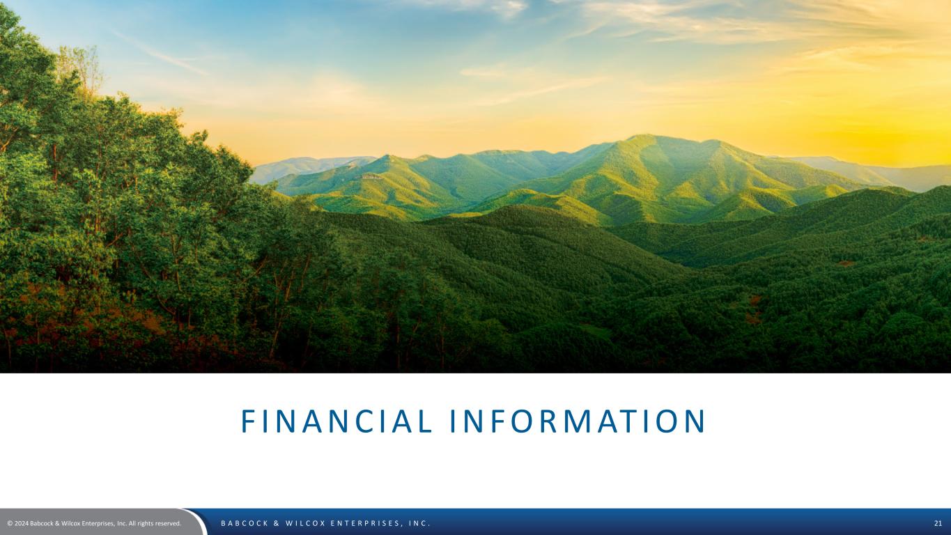 © 2024 Babcock & Wilcox Enterprises, Inc.版权所有。B A B C O C K & W I L C O X E N T E R P R I S E S,I N C. 21 F I N A N C I A L I N F O R M at I O N