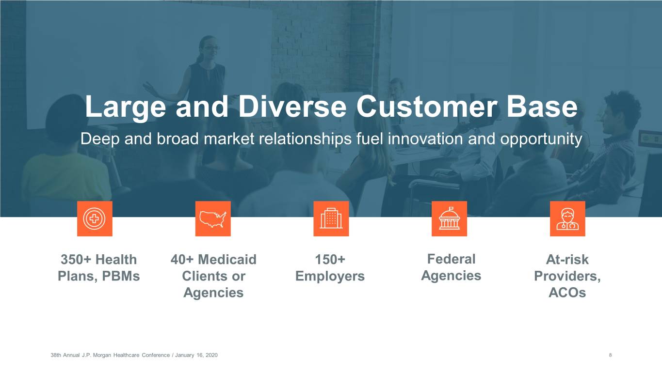 大型和多样化的客户基础深度和广泛的市场关系推动创新和机遇350+健康40+医疗补助150+联邦风险计划,PBMS客户或雇主机构供应商,机构ACOS第38届J.P.Morgan医疗保健年会/2020年1月16日
