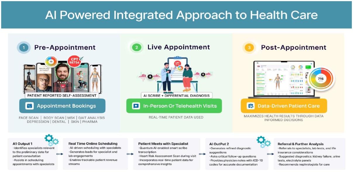 该平台利用预约前后数据的力量,传递有针对性的信息、个性化建议和量身定制的健康建议。通过利用AHI的专有算法,该平台将复杂的数据转化为可操作的见解,根据不断变化的风险分类不断完善和更新其健康建议。这就能够实现自适应解决方案,指导患者完成他们的护理旅程,从最初的DHC扫描到随后的后续扫描和阶段。这确保了无缝的护理连续性,并优化了最佳护理的结果。