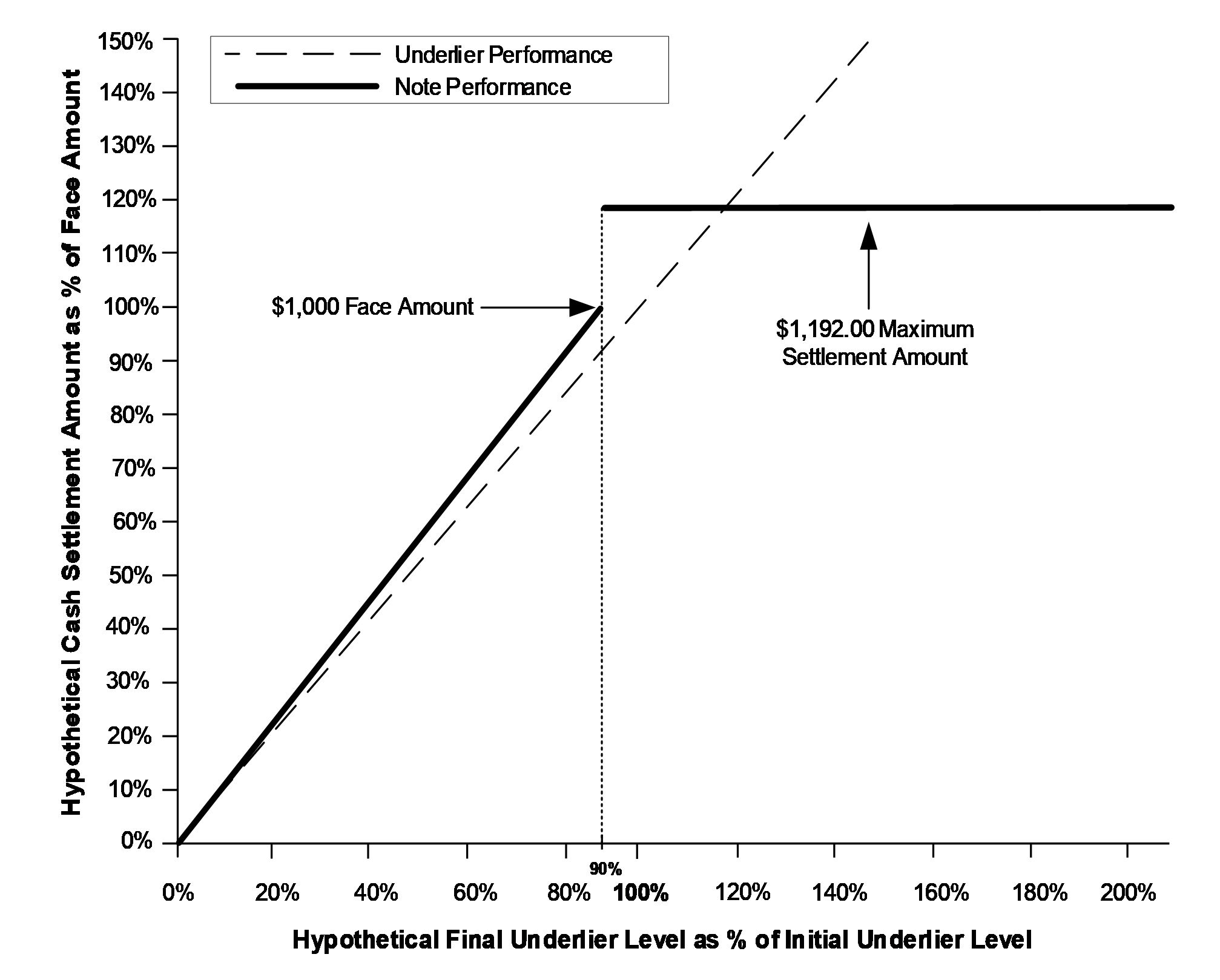●如基础收益大于或等于-10 %(最终基础水平大于或等于初始基础水平的90%),则每张票据的最高结算金额为1192.00美元,或票面金额的119.20%;或