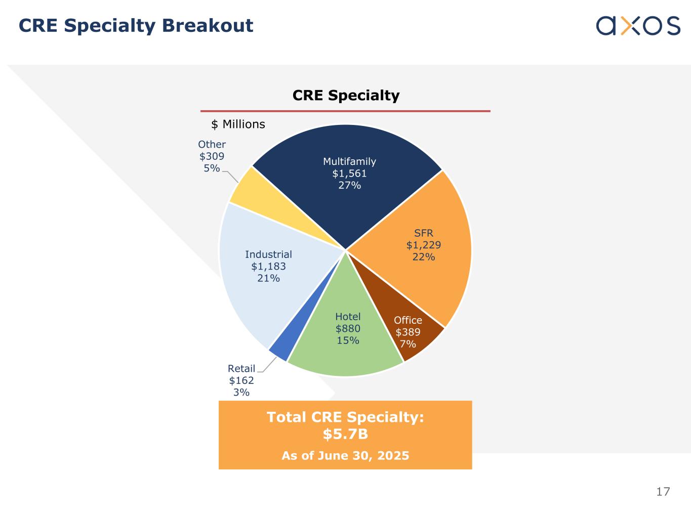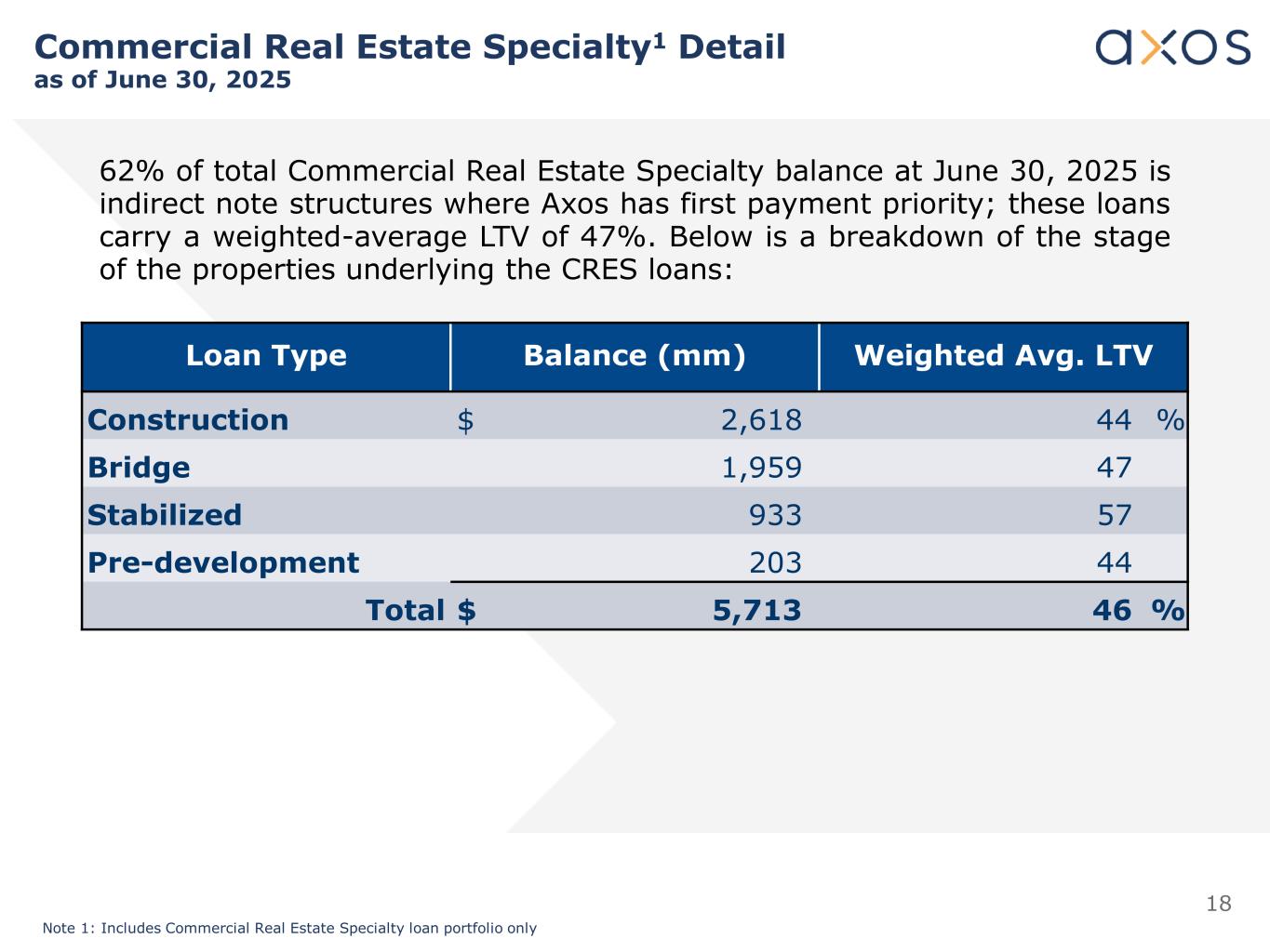17 CRE Specialty Breakout CRE Specialty $ millions Total CRE Specialty:$ 5.7B截至2025年6月30日Multifamily $ 1,5612.7% SFR $ 1,22922% Office $ 3897% Hotel $ 88015% Retail $ 1623% Industrial $ 1,18321% Other $ 3095%