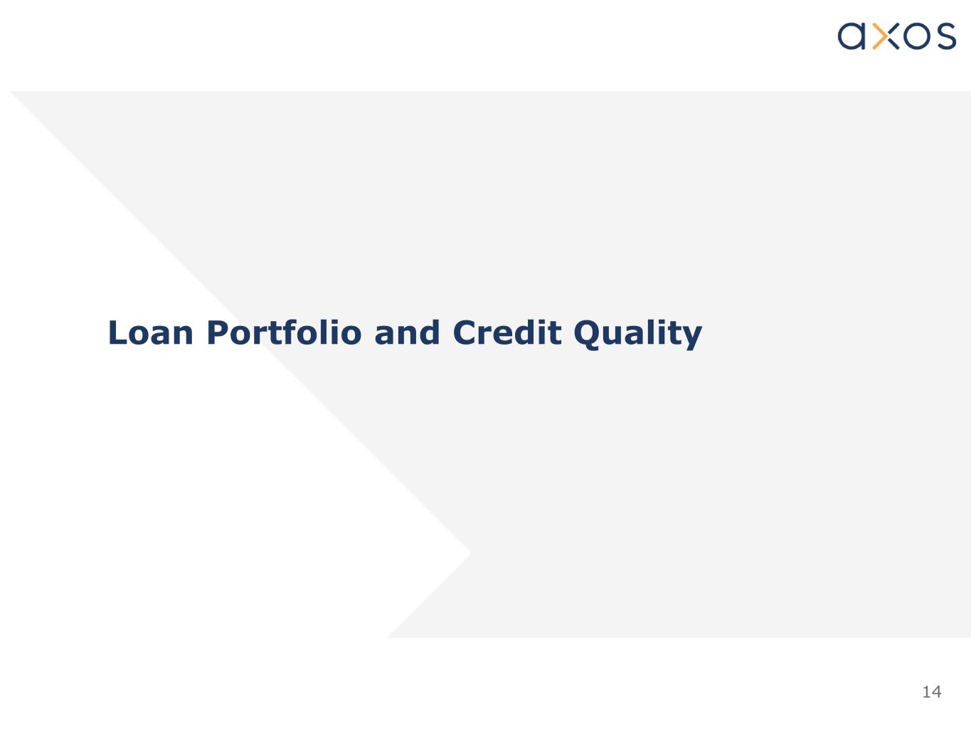 13 Credit Investor Highlights Note1:使用截至2020年6月30日的财政年度和截至2025年6月30日的财政年度的每股收益和账面价值计算的复合年增长率。经验丰富且“经过周期考验”的管理团队在信贷纪律、风险管理和盈利能力方面的业绩记录差异化的数字平台完全数字化,没有一家分行模式比传统银行提供结构性成本优势,为利用数字金融服务采用强大的信用表现奠定了低LTV的信用文化基础,房地产担保贷款(99%的贷款由硬资产支持)在所有贷款人金融和商业专业可再生能源贷款中担任高级职位,获得发起人和初级合伙人的资本支持存款多样化和增长持续的核心存款转型和流动性管理32%支票和其他活期存款,截至2025年6月30日,可选择从AxOS Securities获得约15亿美元的存款,可提供显着的费用收入健康的资本状况和资本生成,通过收益一级资本比率为12.52%,一级杠杆率为10.73%,总资本比率为15.28%卓越的盈利能力(EPS的CAGR为20.0%)推动了过去五年账面价值18.2%的复合年增长率1截至2025年6月30日的财政年度ROAA为1.82%,ROAE17.30 %公司评级简介BBB + Kroll